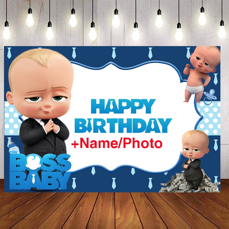 BOSS BABY Birthday Backdrop For Children Birthday Party Decor Navy Blue Background Cute Baby Custom Name Photo