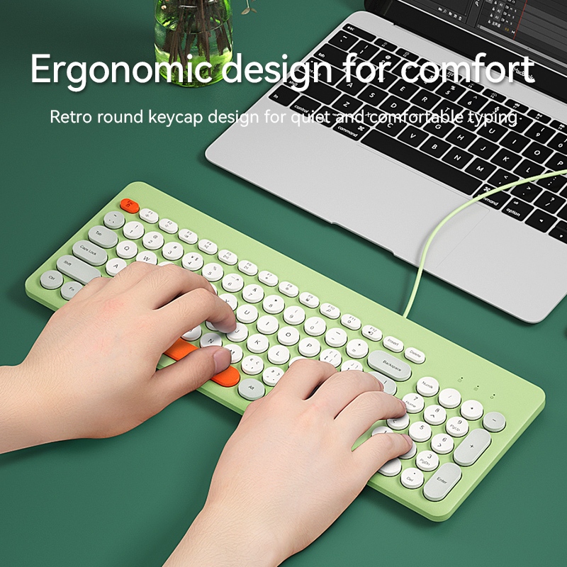 BOW Colorful Green Wired Keyboard Round Concave Keycaps K221U Comfortable Typing Ergonomic Keyboard for Work
