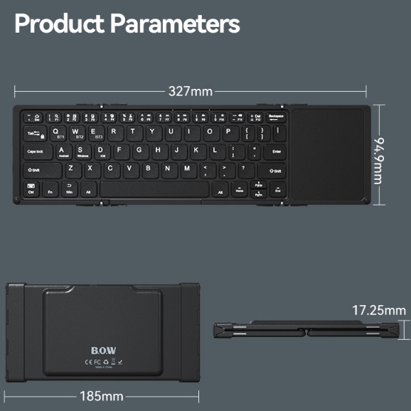 BOW Compact Portable HB318 Wireless Folding Keyboard Bluetooth Rechargeable Black Keyboard with touchpad