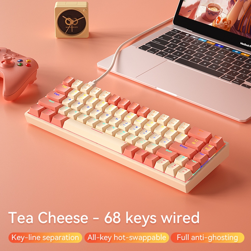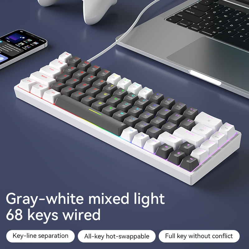BOW Gaming Mechanical Keyboard 68 Keys G68S ABS Hot-swappable Wired Wireless Bluetooth Gaming Keyboard Colorful Anti-ghosting