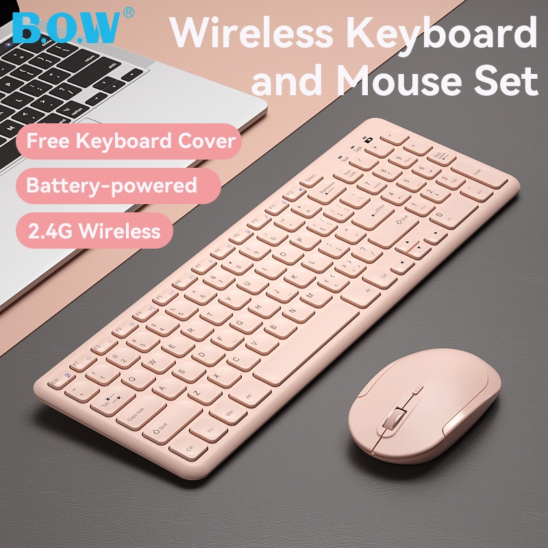 BOW HW256 Wireless Keyboard and Mouse Set Silent Lightweight 2.4G Ergonomic Mice Combo with Free Keyboard Film