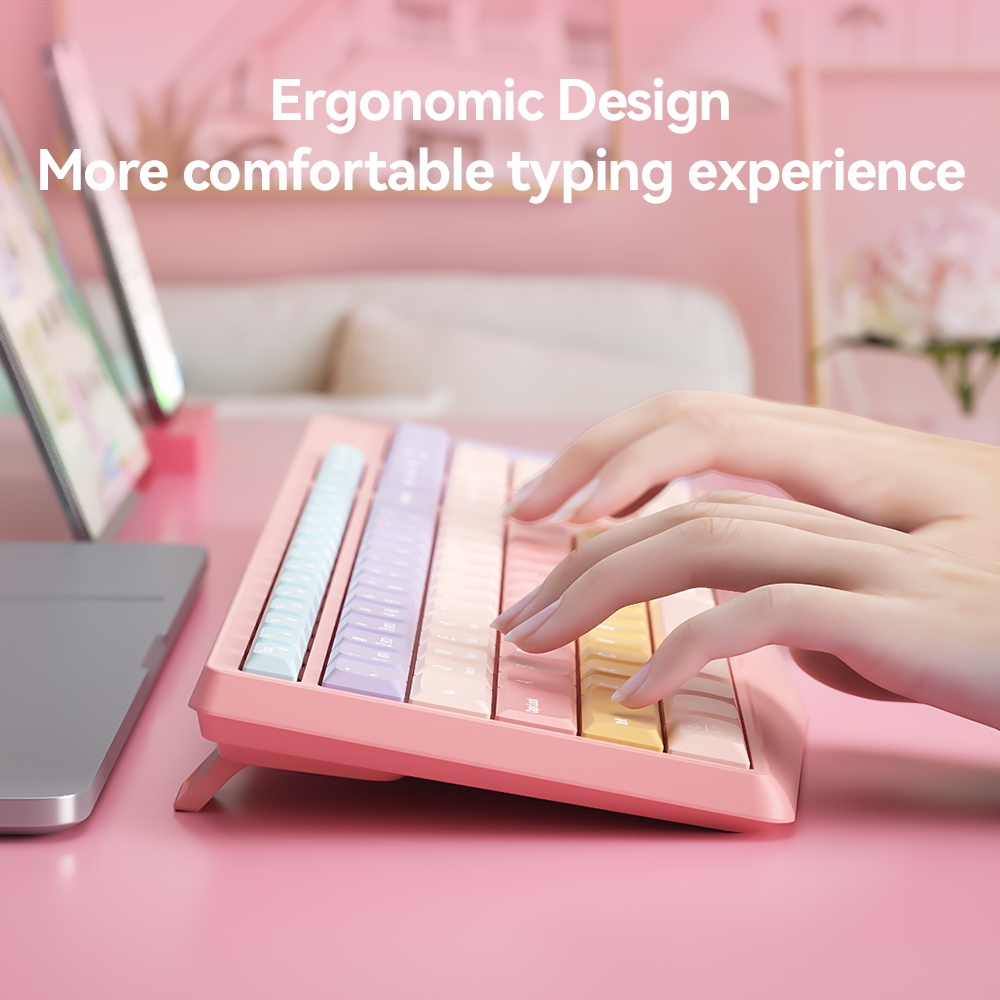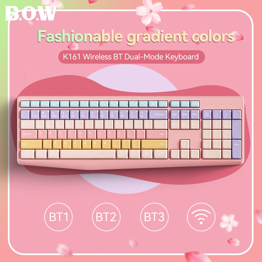 BOW K161D Wireless Bluetooth Dual-Mode Keyboard BT Bass Keys Gradient color Cute Green Keyboard Battery Version
