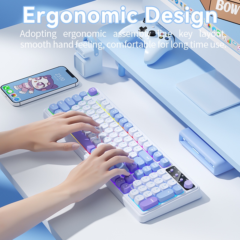 BOW K520 Series Ergonomic keyboard RGB Backlight Rechargeable Three-mode Wired Bluetooth Wireless Keyboard with numeric keypad