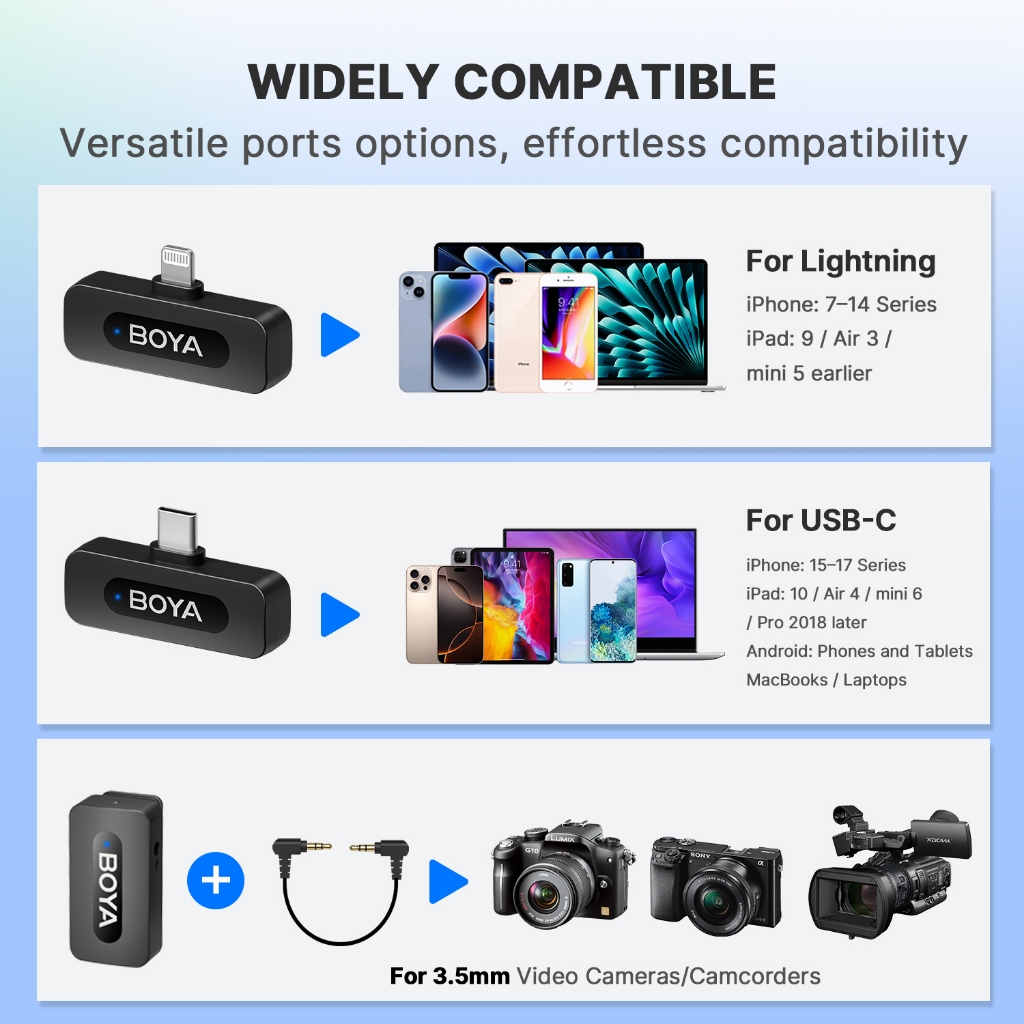 BOYA BY-V1/V2 Wireless Microphone Lapel Noise Cancelling Mic for Vlogging iPhone Android