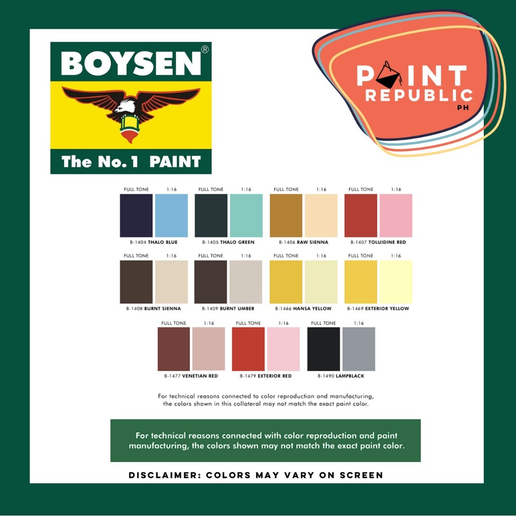 BOYSEN Latex Colors (Acry-color) - Liter and 1/4L Size for Water-based Paints | Paint Republic PH