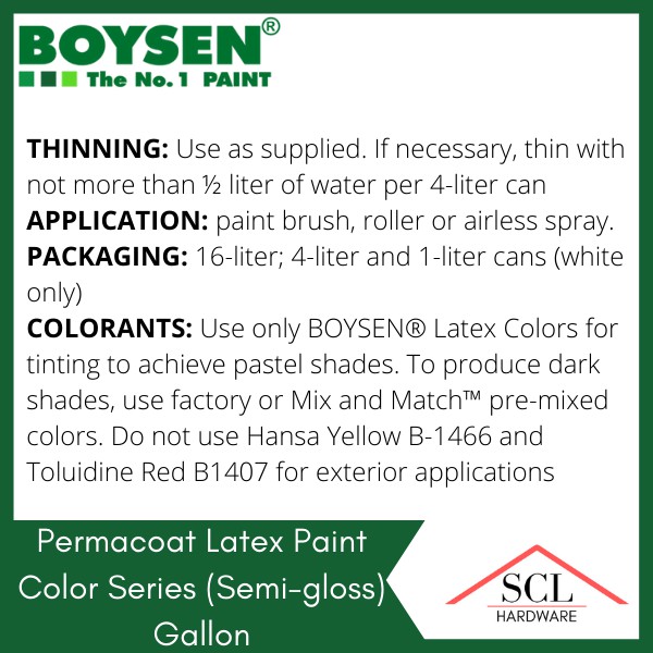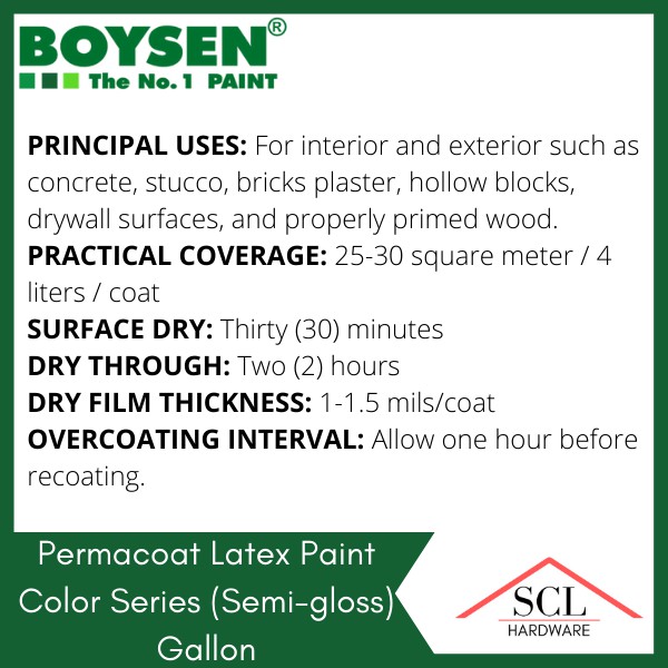 BOYSEN Permacoat Semi-Gloss Acrylic Latex Paint 4L (For Concrete & Stone Surfaces)