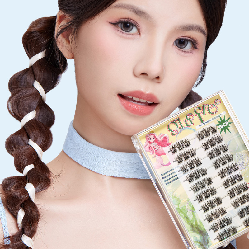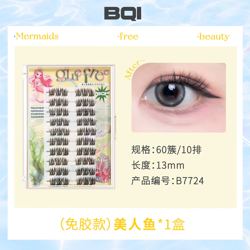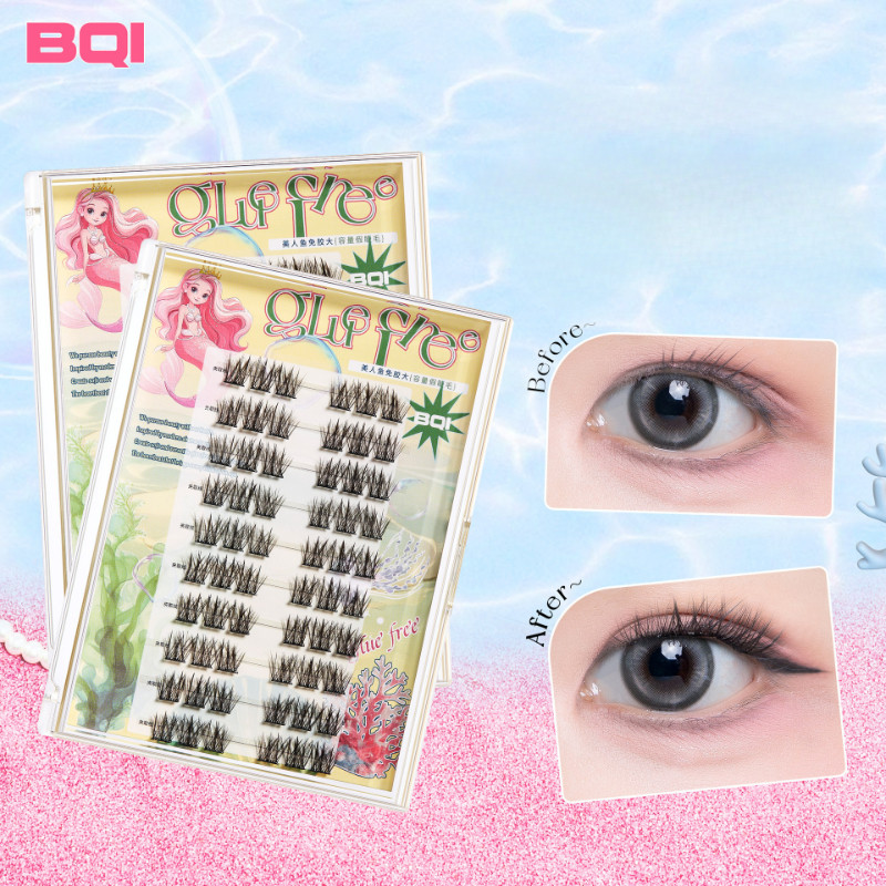 BQI False Eyelashes Glue-Free Large-Capacity False Eyelashes Curling Single Cluster Grafted Eyelashes