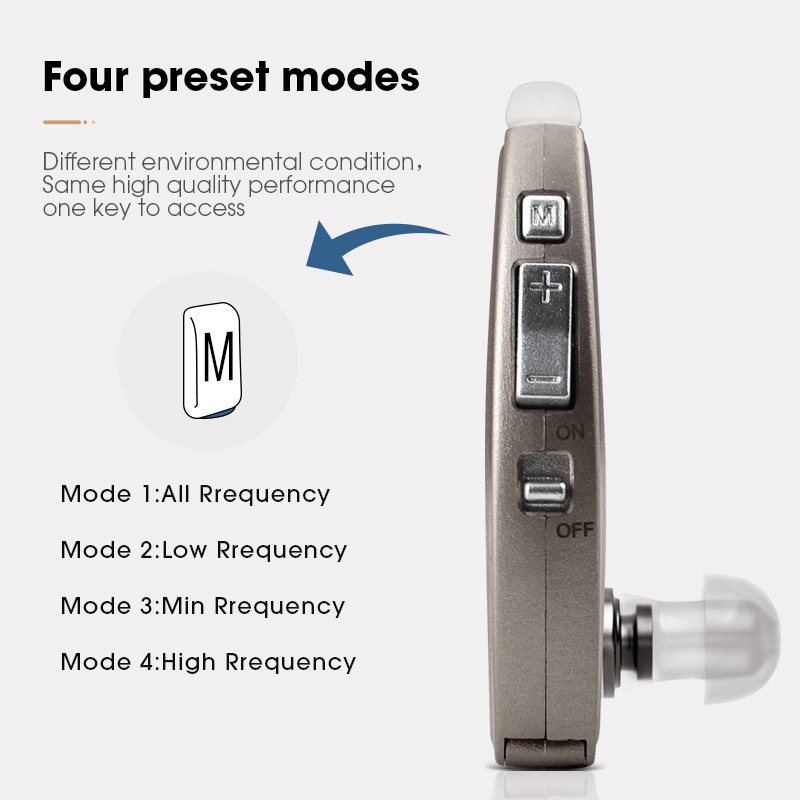 BRITZGO Behind The Ear Hearing Aid Battery Digital Modes Switch Light Weight VHP-220 Silver