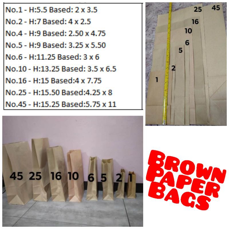 BROWN PAPER BAG / NOTION BAG/KRAFT BAG Size #4,Size #5,Size #6, Size #8 and Size #10 100PCS