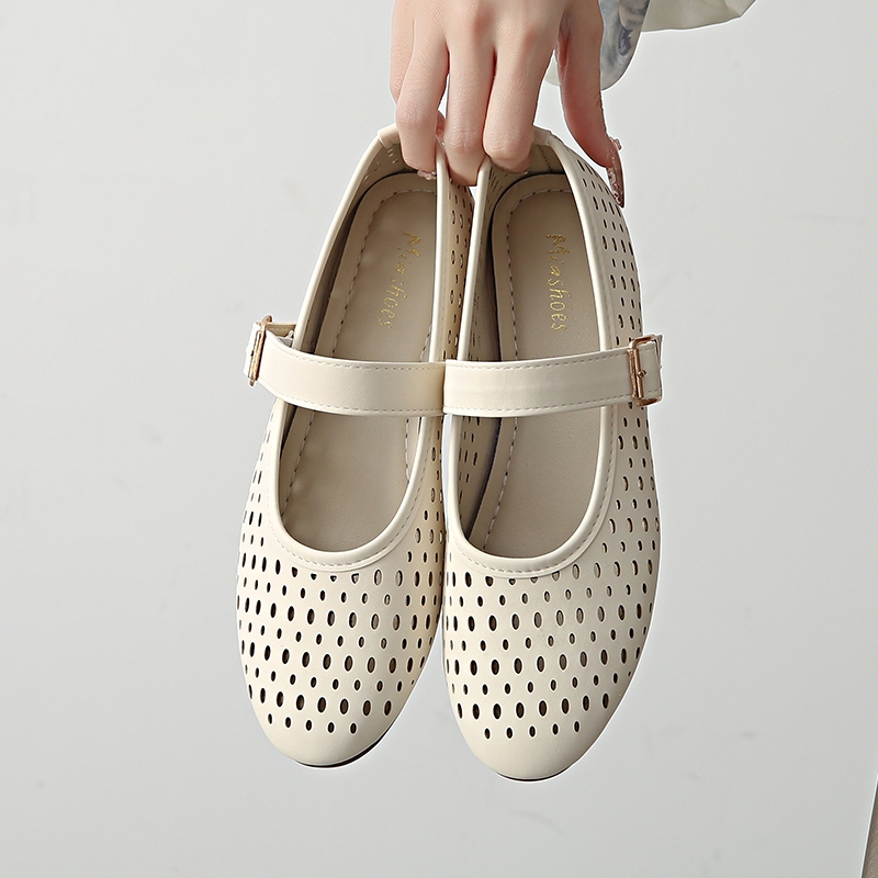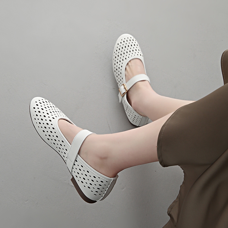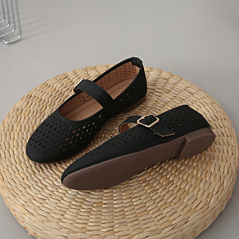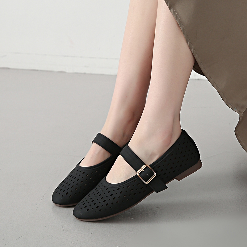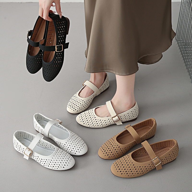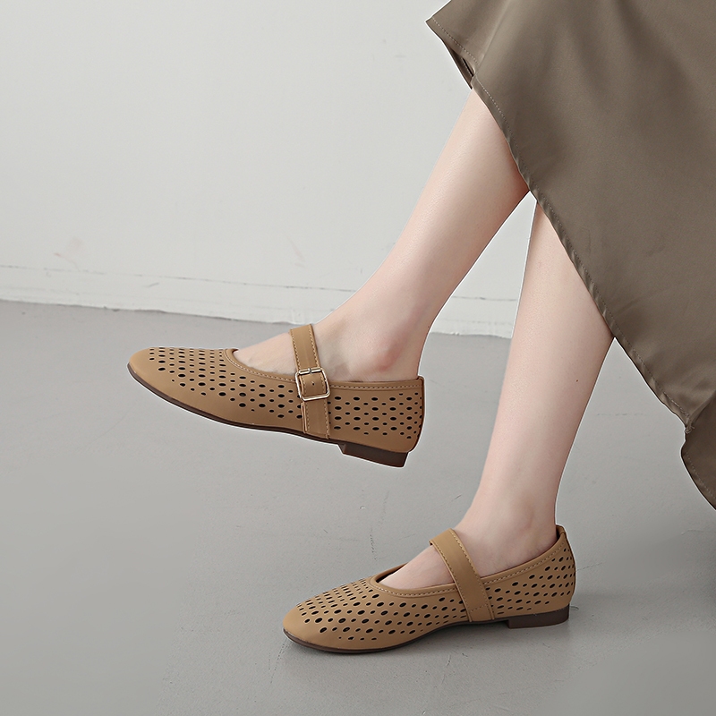 BS Flat Sandals for Women Retro Buckle Round Toe comfortable doll shoes daily wear #Mia-1023