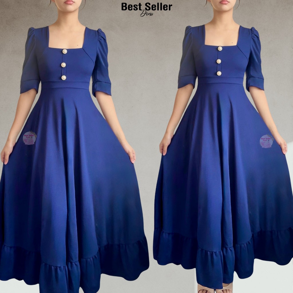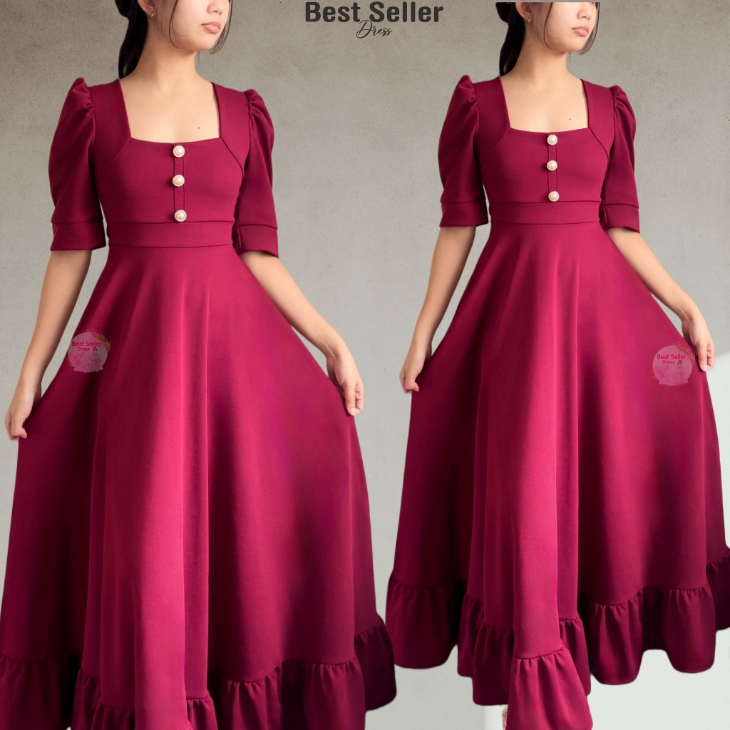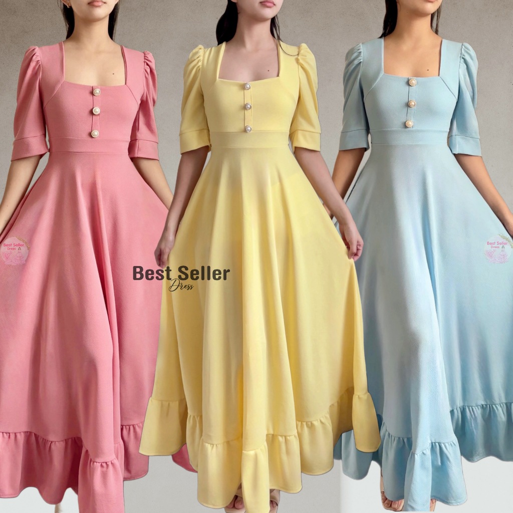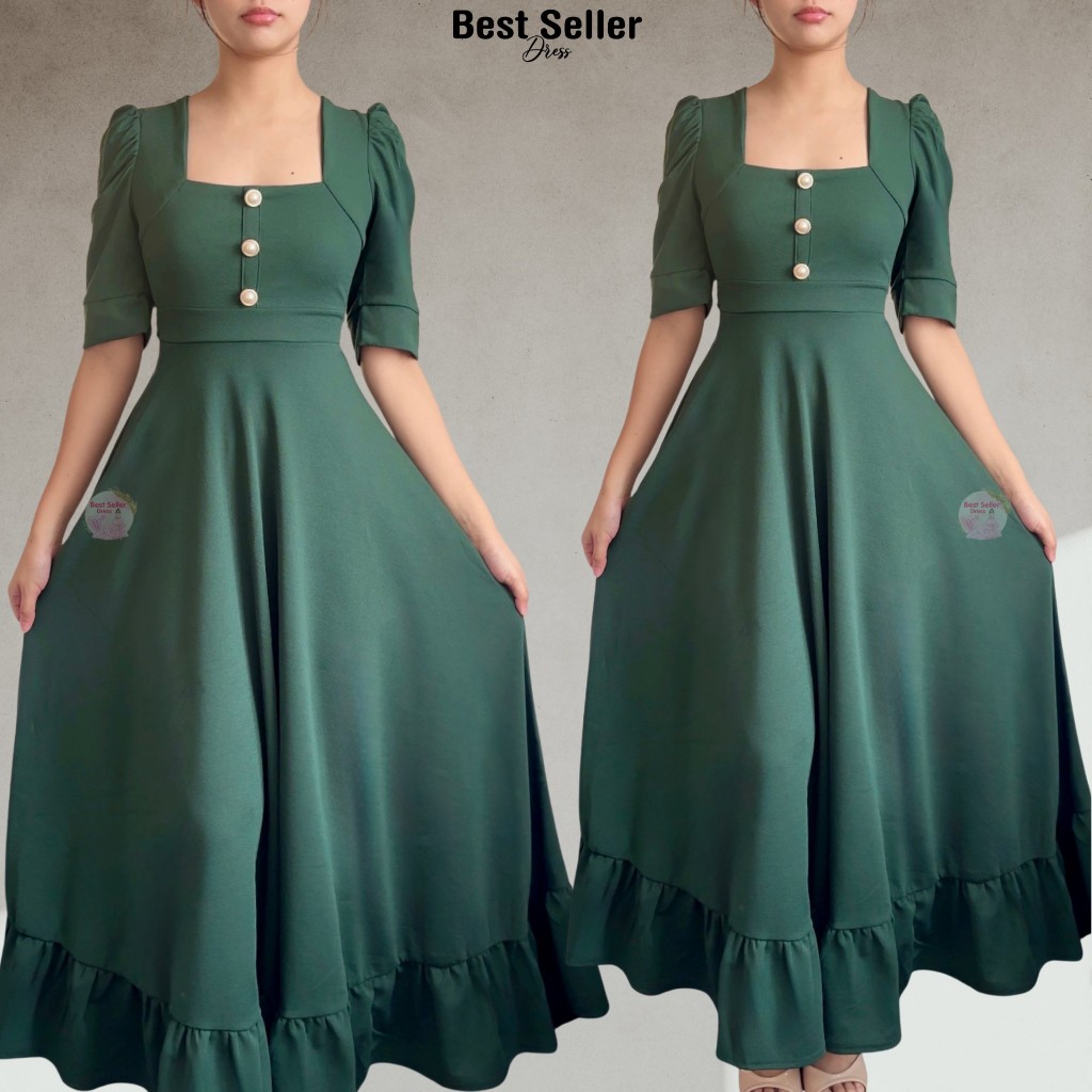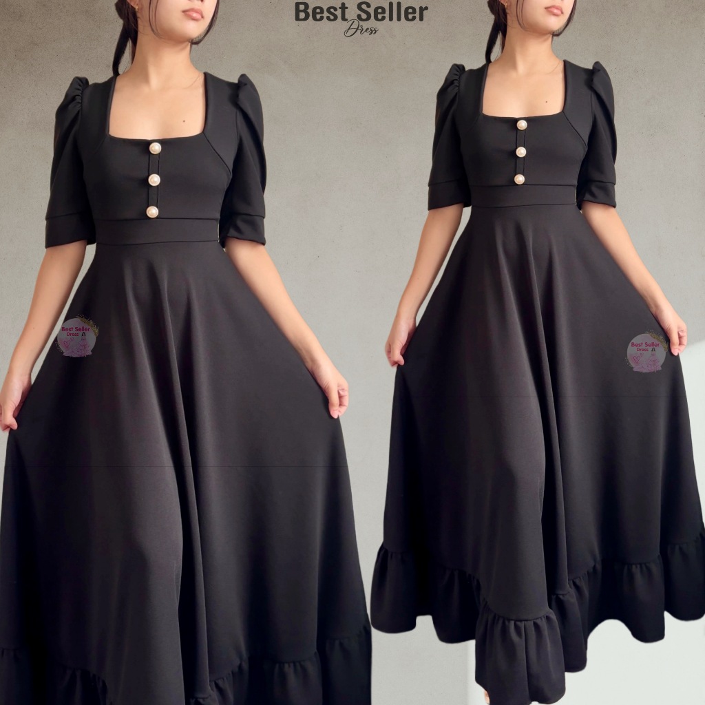 BSD Best Seller Dress Josephine (XS-XXL) Puff Sleeves With One Side Pocket Maxi Womenswear Dress