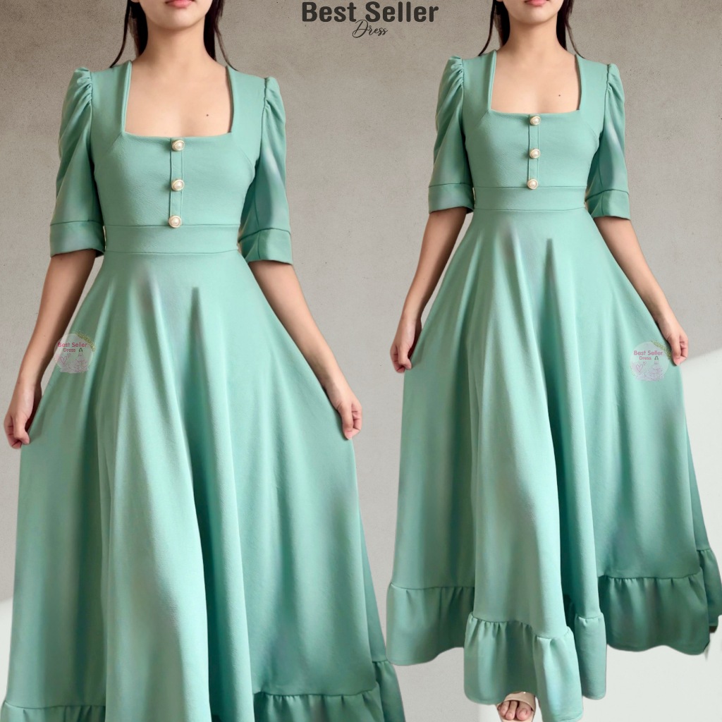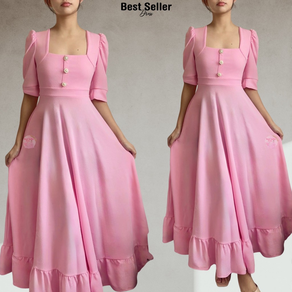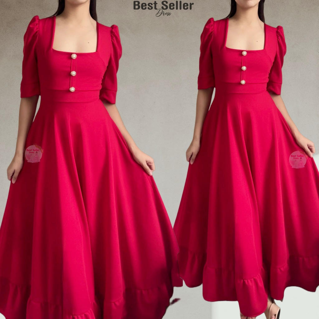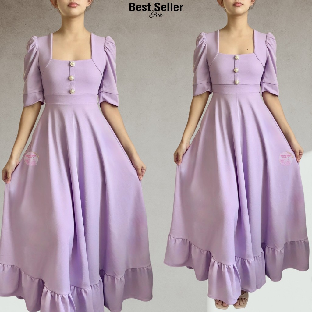 BSD Best Seller Dress Josephine (XS-XXL) Puff Sleeves With One Side Pocket Maxi Womenswear Dress