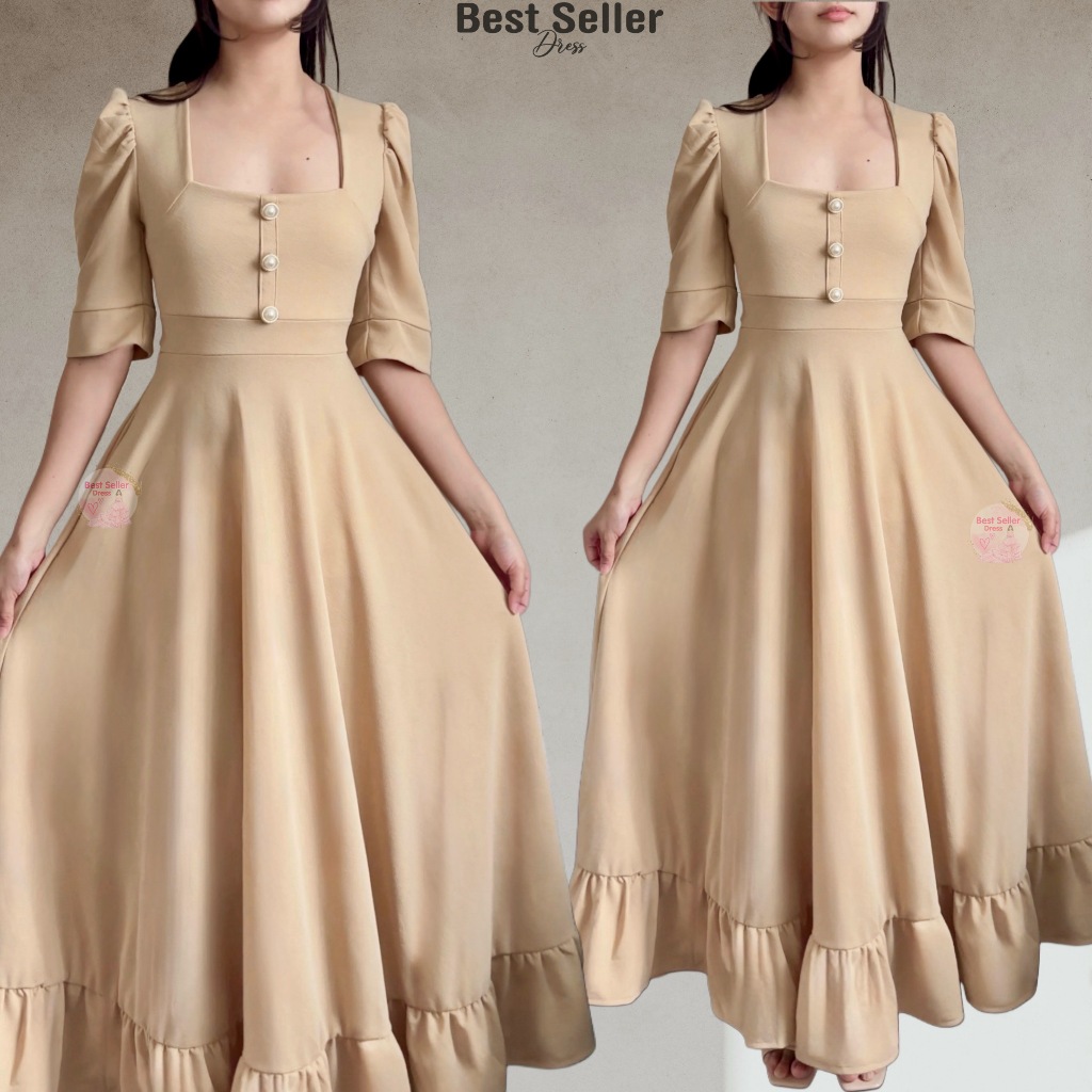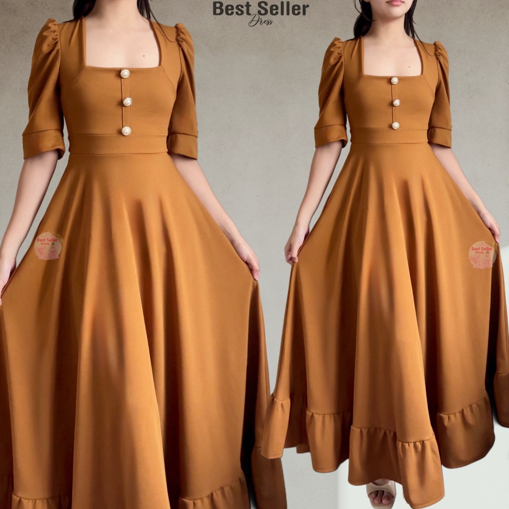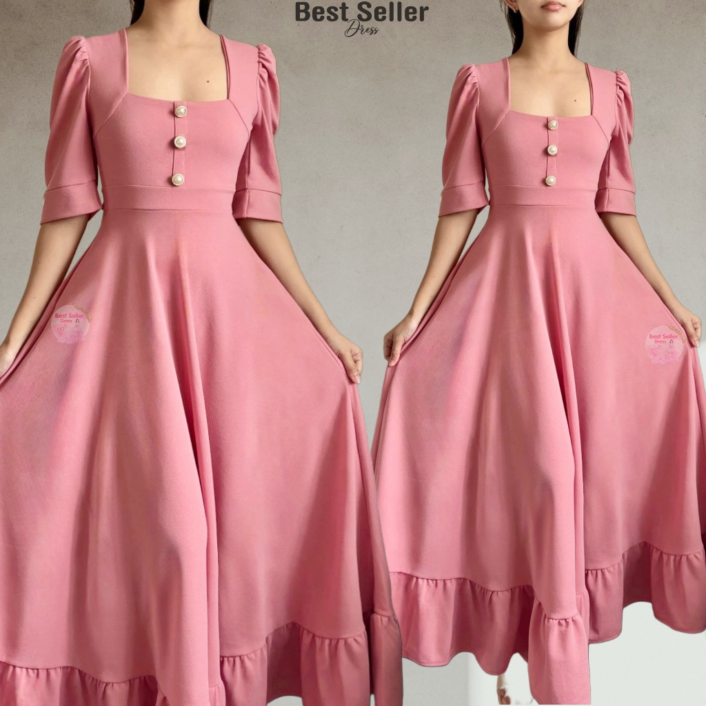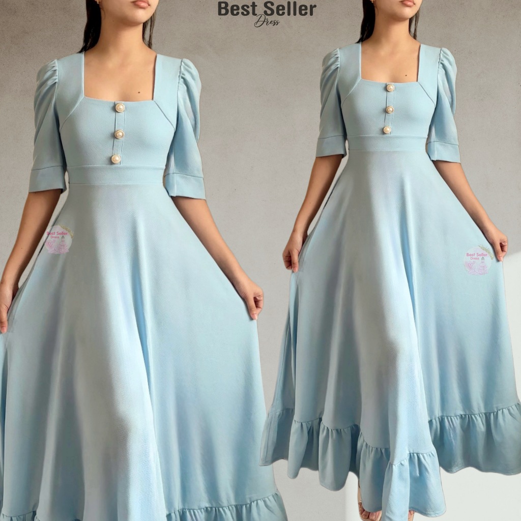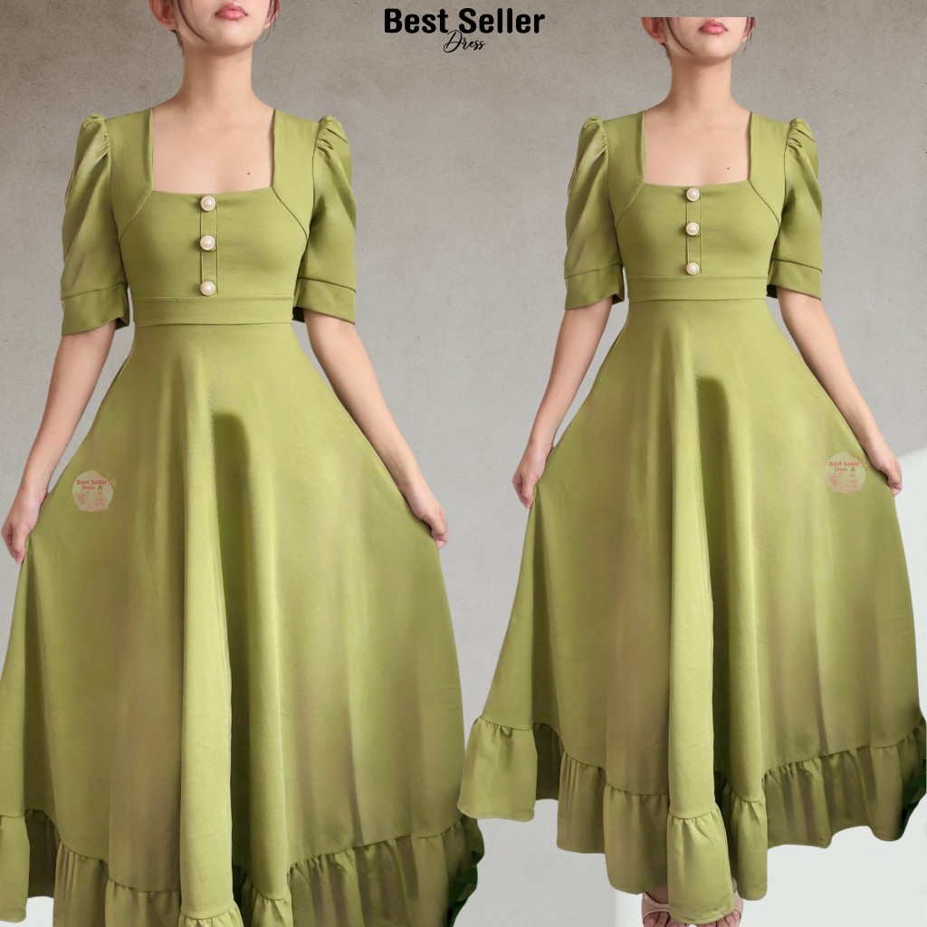 BSD Best Seller Dress Josephine (XS-XXL) Puff Sleeves With One Side Pocket Maxi Womenswear Dress