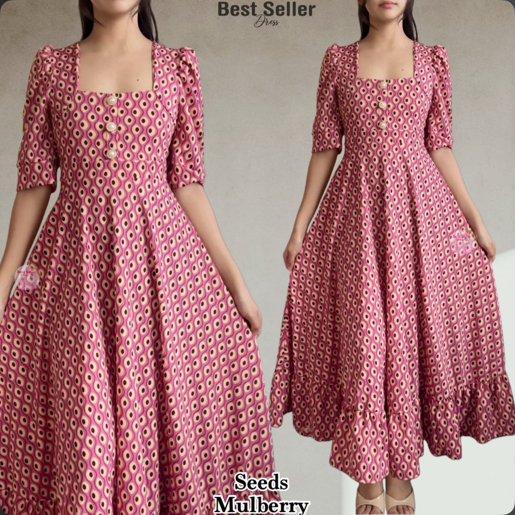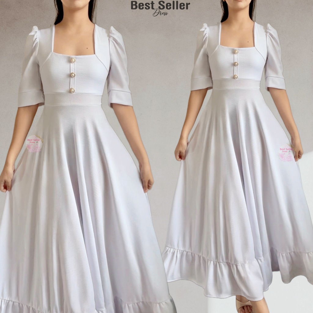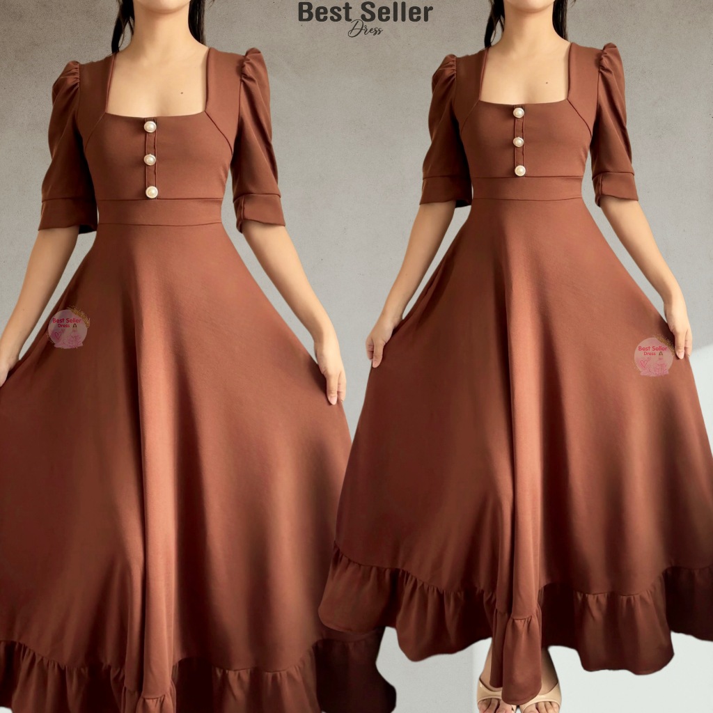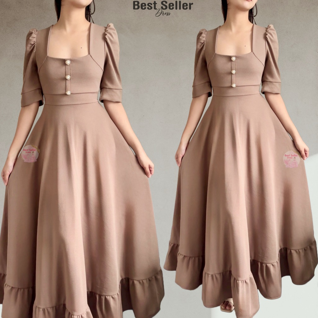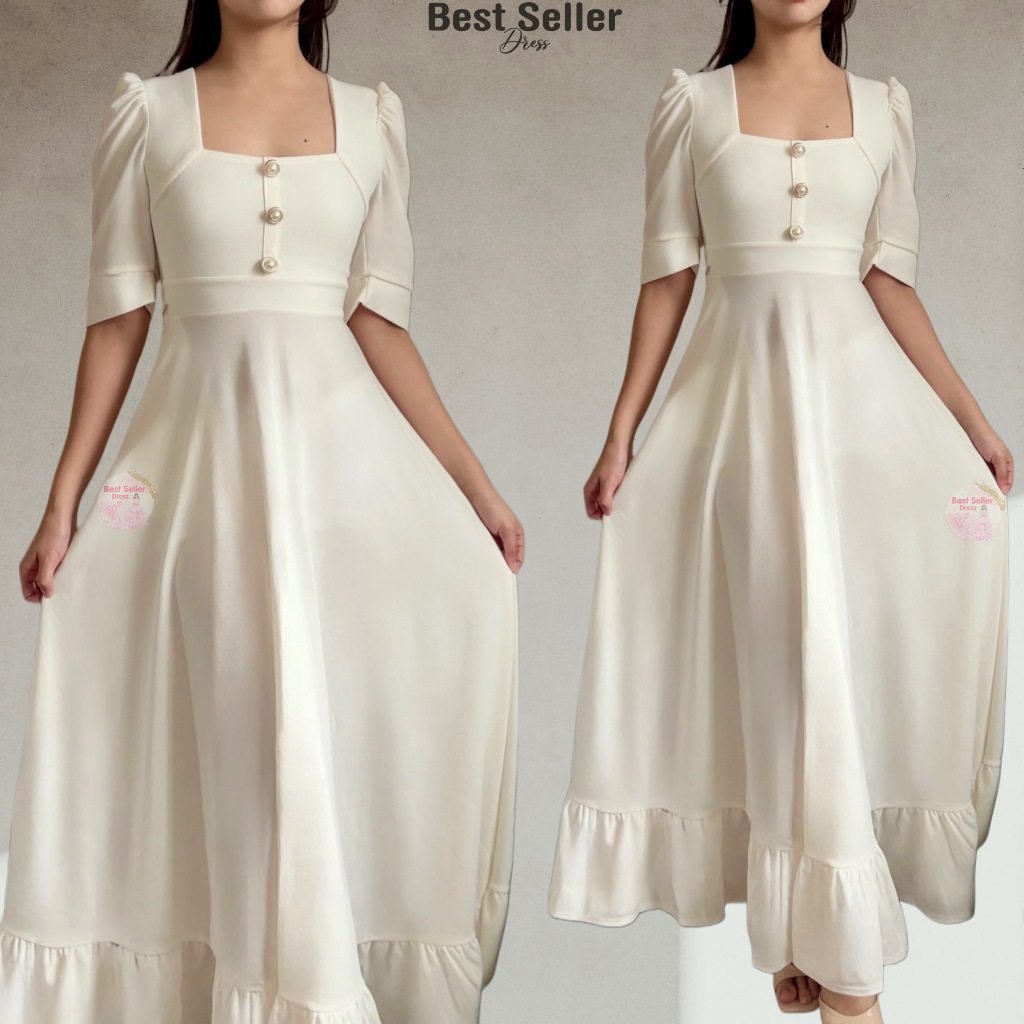 BSD Best Seller Dress Josephine (XS-XXL) Puff Sleeves With One Side Pocket Maxi Womenswear Dress