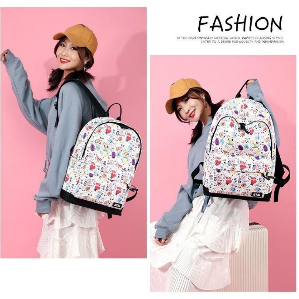 BT21 School Bag Backpack Computer Bag BTS Bangtan Boys Campus Backpack Large Capacity Travel Bag