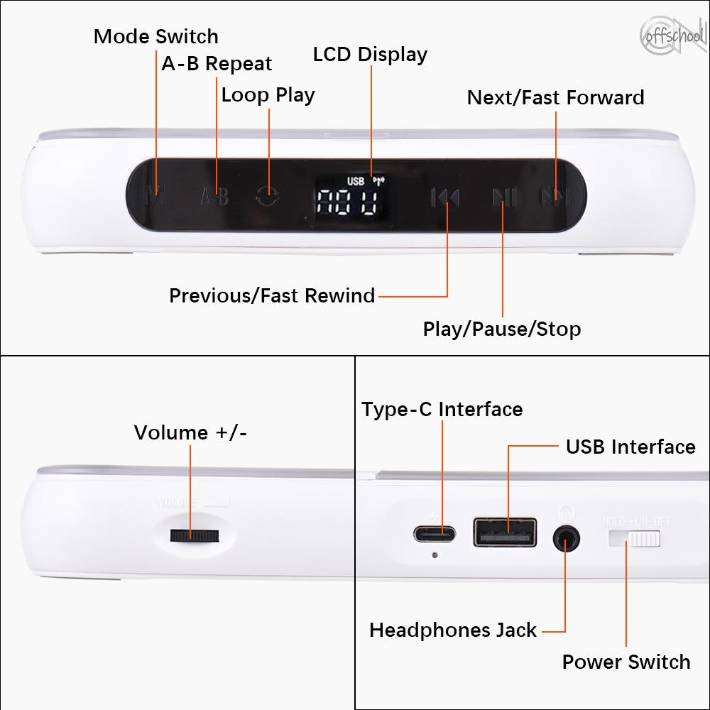 BT5.1 CD Player Portable Music Player FM Radio Desktop CD Runner with Dustproof Cover LED Display 6