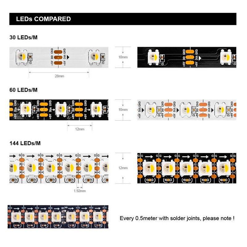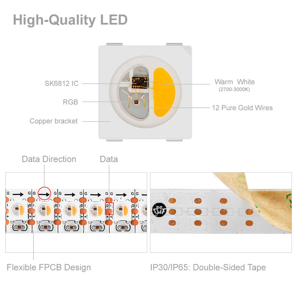 BTF-LIGHTING SK6812 RGBW 4 in 1m 144 leds/pixels/m DC5V Individual Addressable Led Strip IP30/65/67