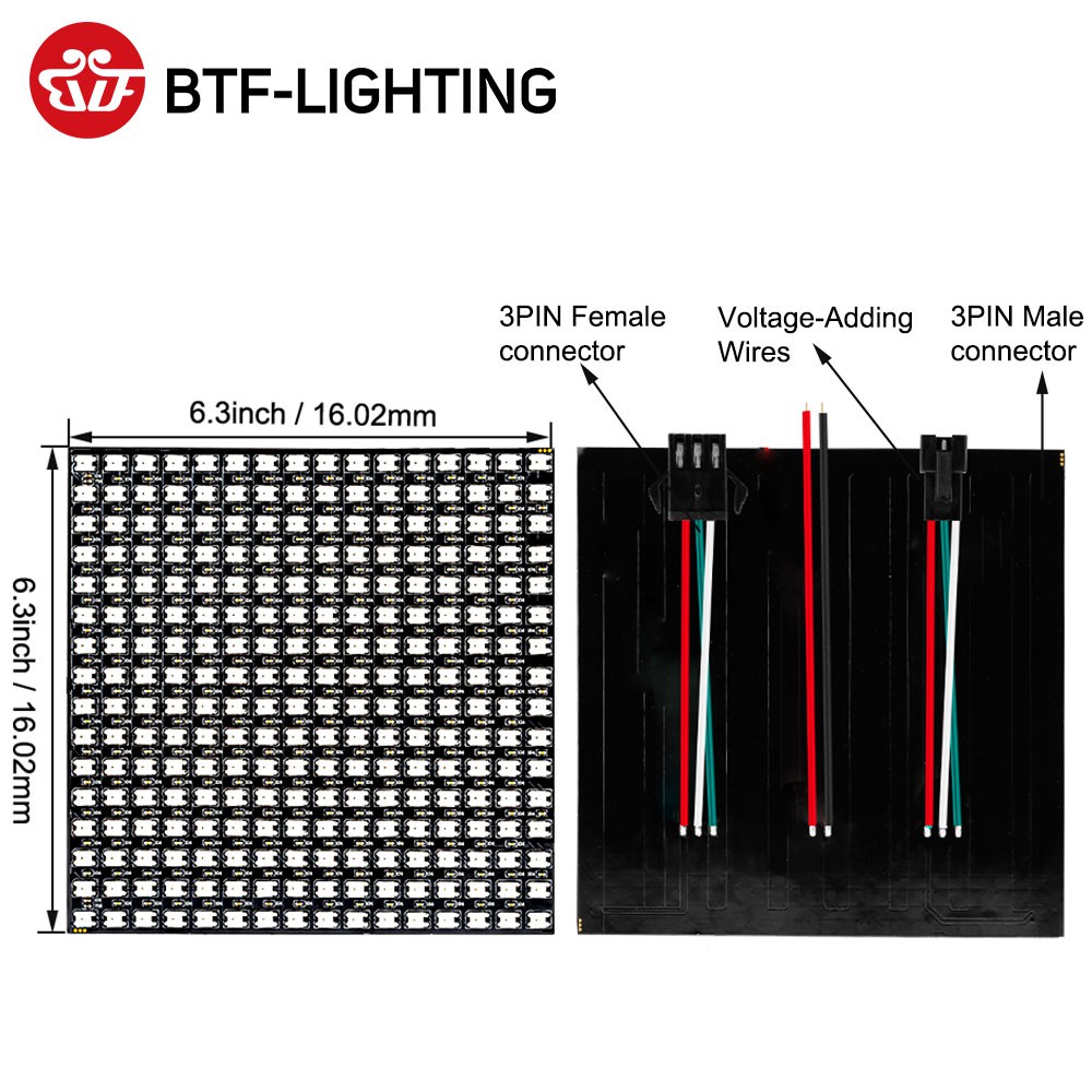 BTF-LIGHTING WS2812B RGB LED Panel Screen 8x8 16x16 8x32 256 Pixels Digital Flexible Full Color DC5V