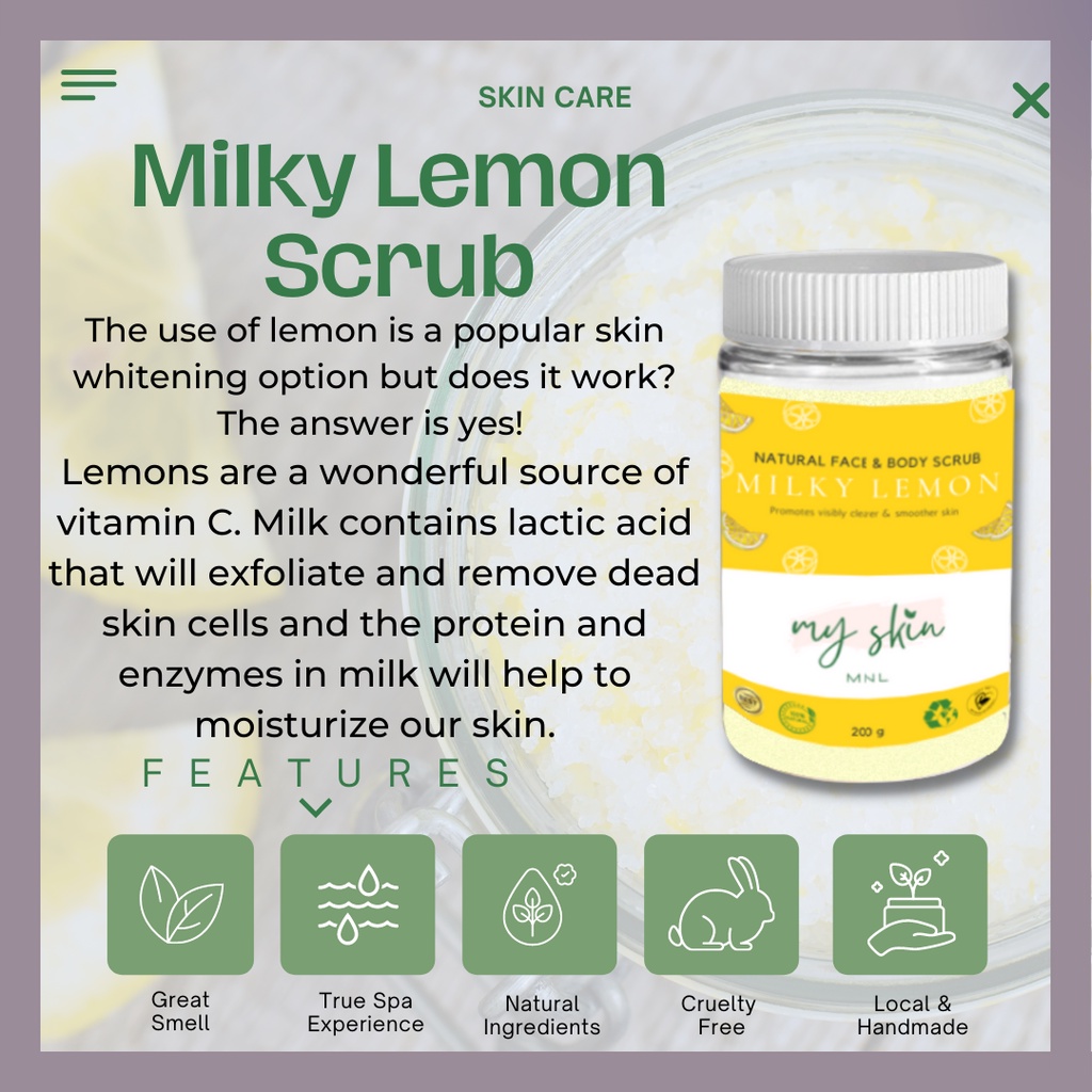 BTM X My Skin -Milky Lemon Salt Body Scrub, Lemon, Milk And Salt Whitening Scrub