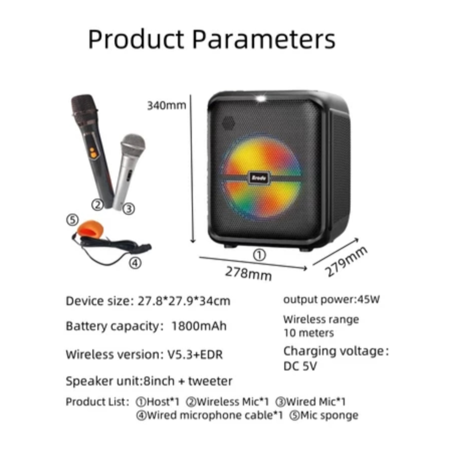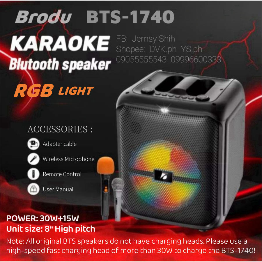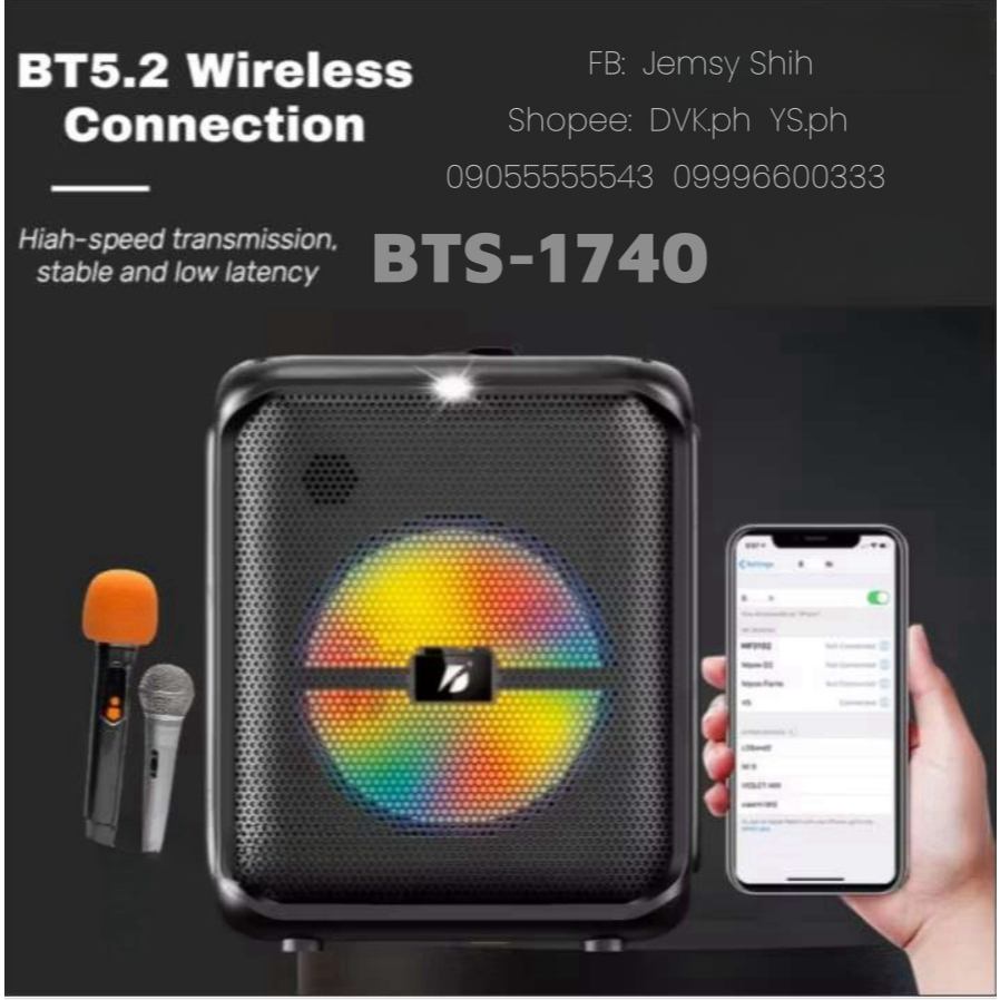 BTS-1740 Bluetooth 5.3 subwoofer speaker with wireless microphone Ikaraoke series 1739-1783-1935