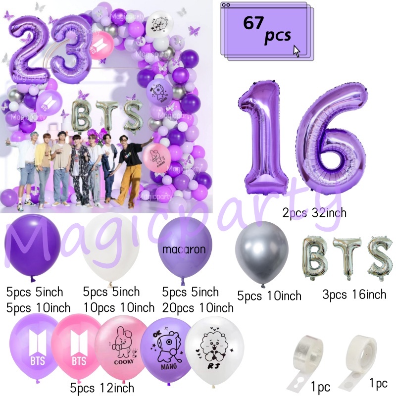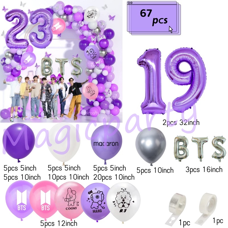 BTS Balloon Balloon BT21 Cooky RJ Purple 32inch 15-25th Number Balloons Birthday Decoration Set Weeding Party Needs