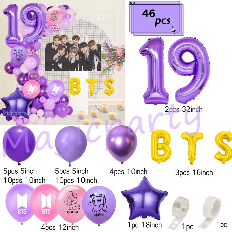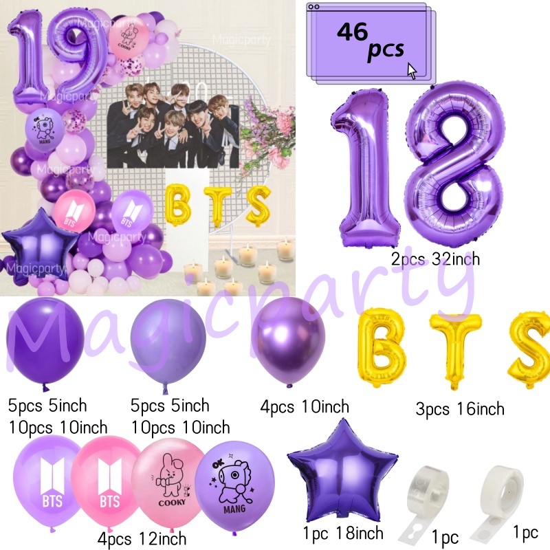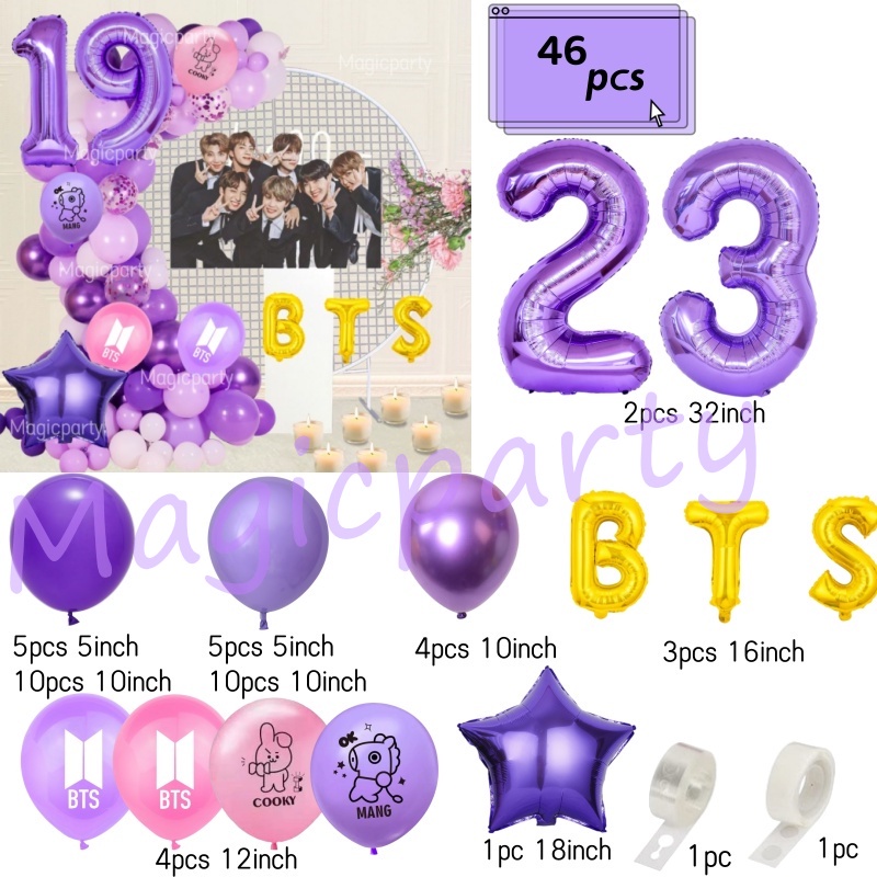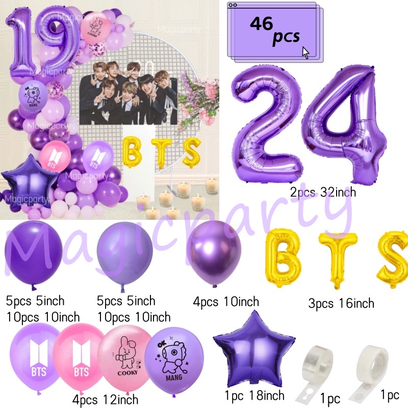 BTS Balloon Balloon Cooky Purple18Inch Star Purple 32inch Number Balloons Birthday Decoration Set Weeding Party Needs