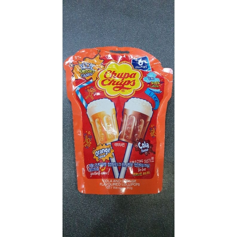 [Chupa Chups] 6pcs Fizzy lollipops 90g (coke/orange flavor) Fizzy drink candies