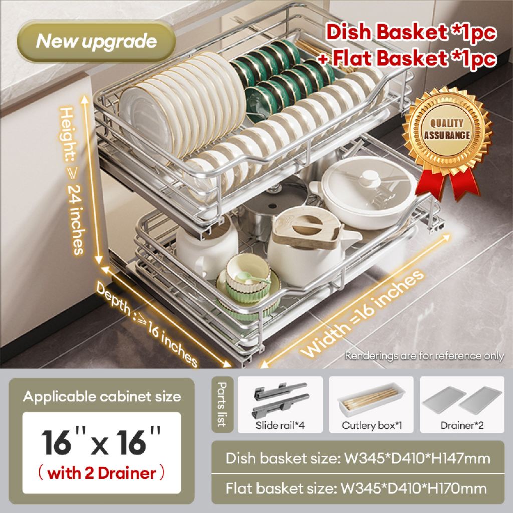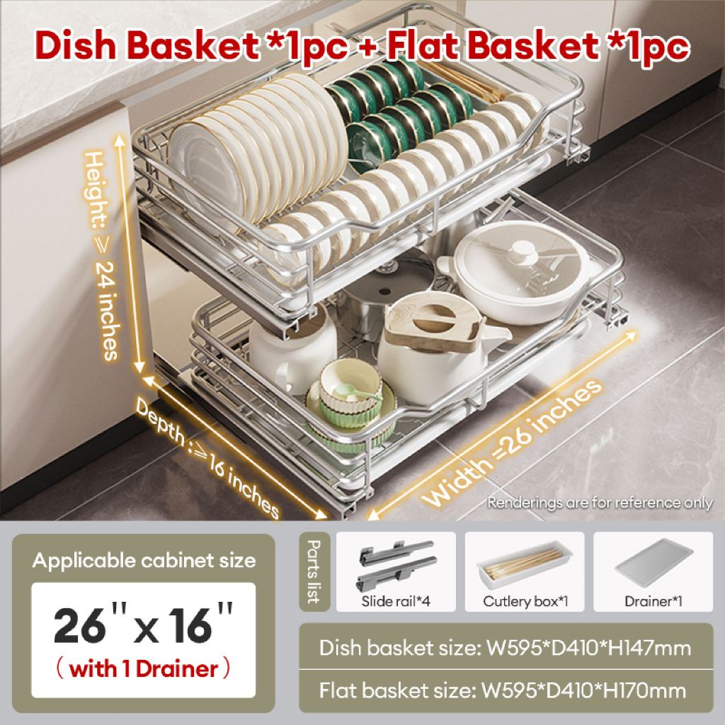 BTY 1/2PCS Pull Out Basket Stainless Dish Rack Pull Out Tray Plate Drawer Cabinet for Kitchen Reck