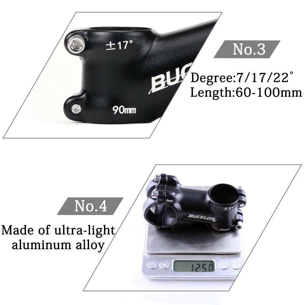 BUCKLOS 31.8mm Stem 7/17/23 Degree Mountain Bike Handlebar Stem 60/70/80/90/100mm Rb Stems Alloy Cycling Parts
