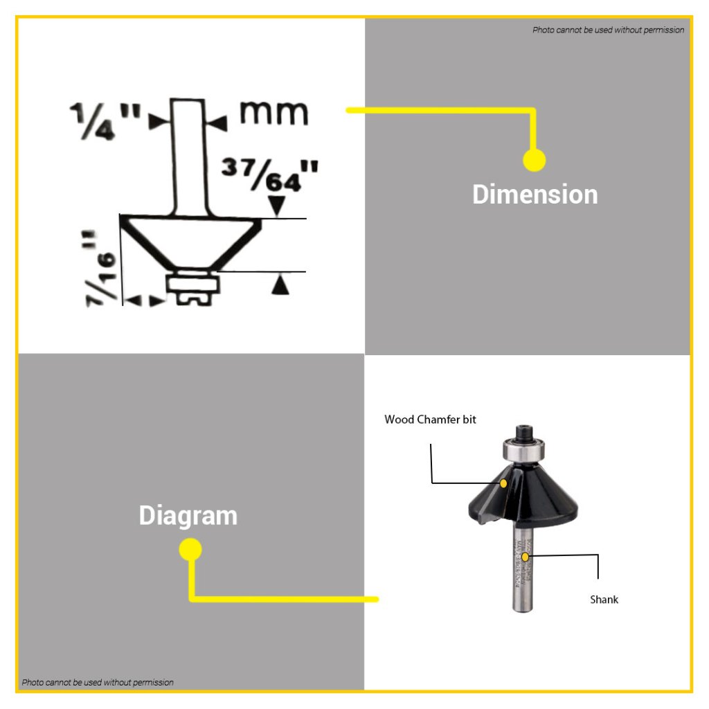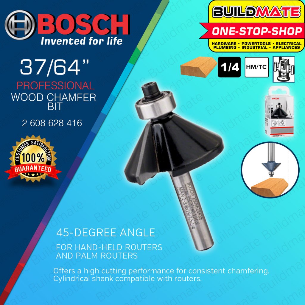 BUILDMATE Bosch 1/4" Inch Shank Chamfer Router Bit Blade Woodworking Milling Cutters 2608628416 BAX