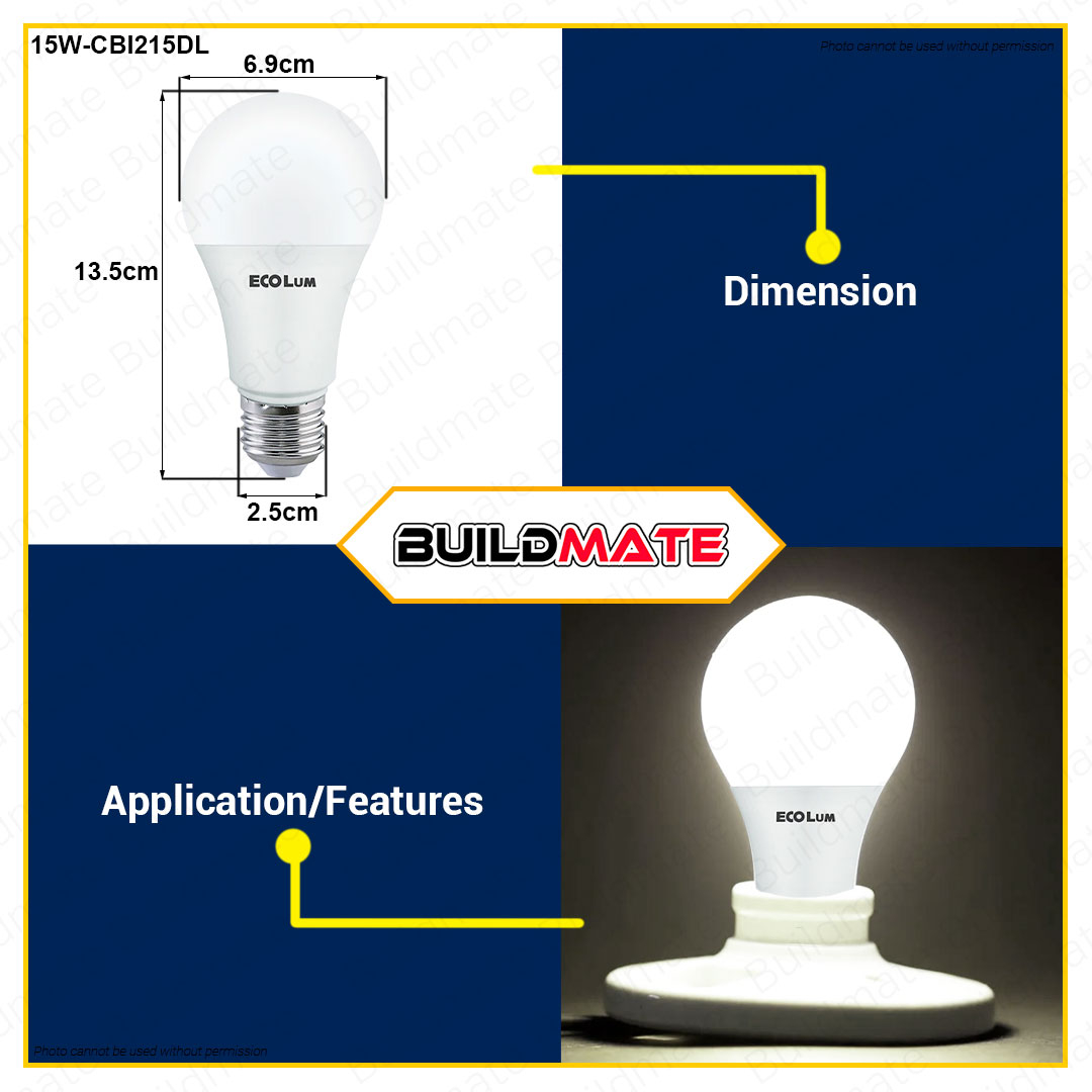 BUILDMATE Ecolum Led Bulb E27 Daylight Premium 3W - 15W 6500K LED Light Bulb LED Lite Office Light