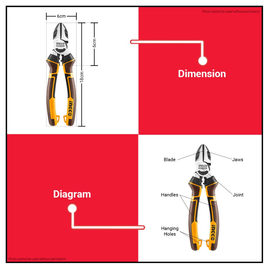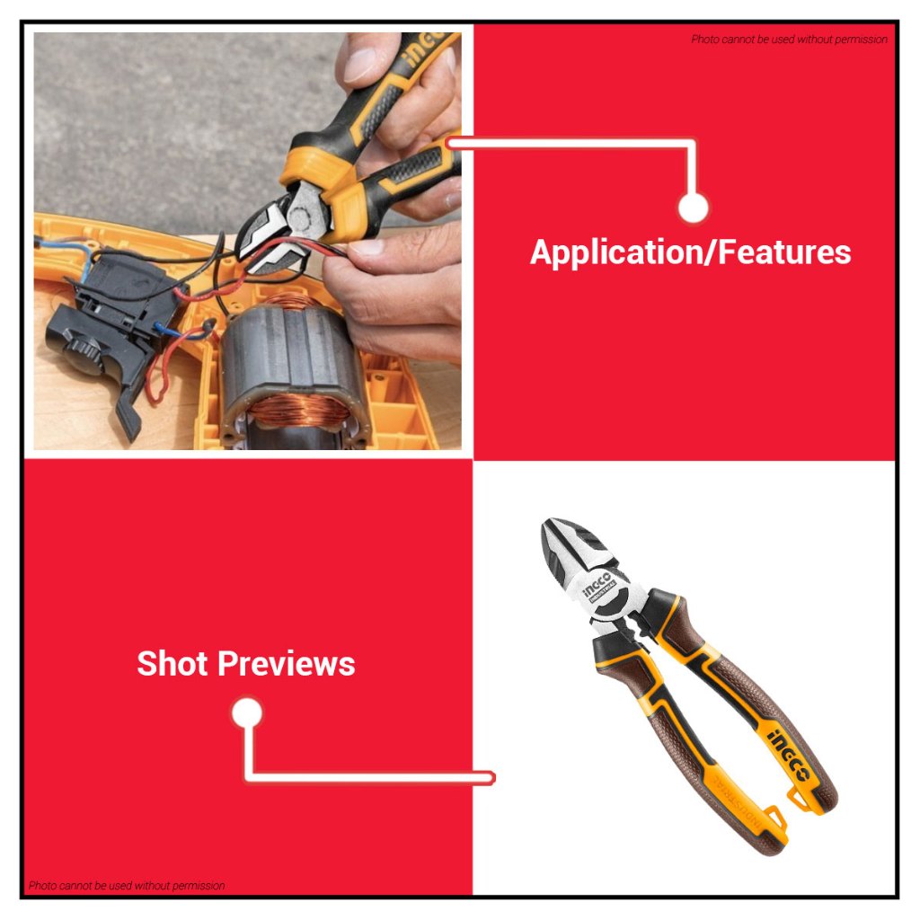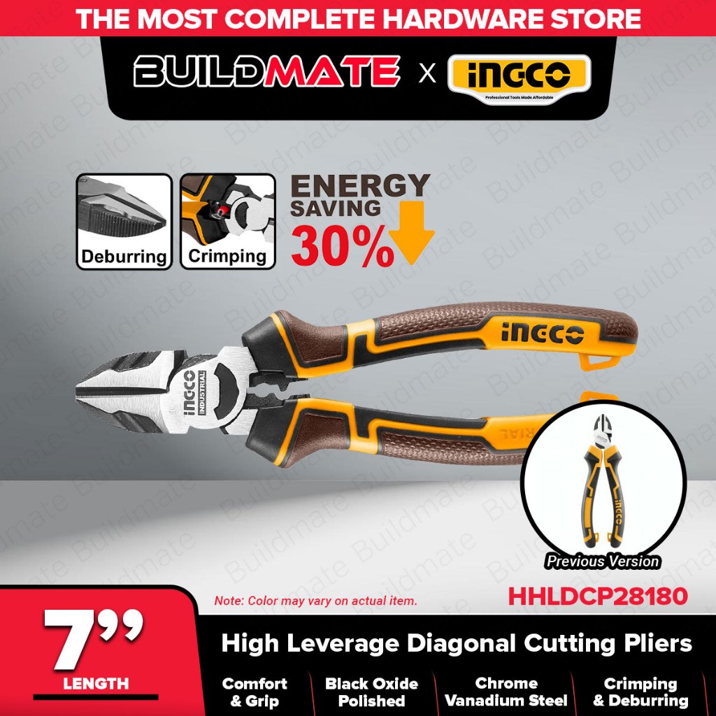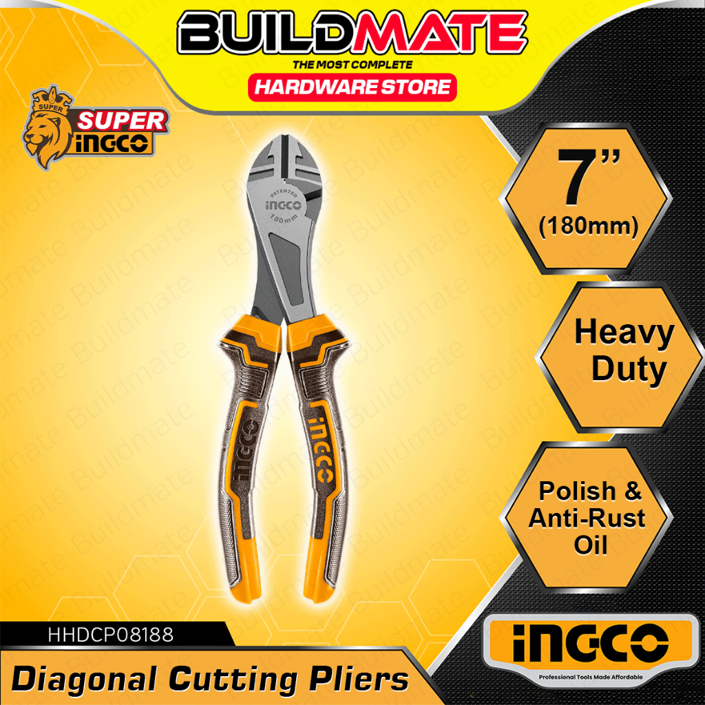 BUILDMATE Ingco 7 Inch Diagonal Cutting Pliers Heavy Duty / High Leverage Wire Cable Side Cutter IHT