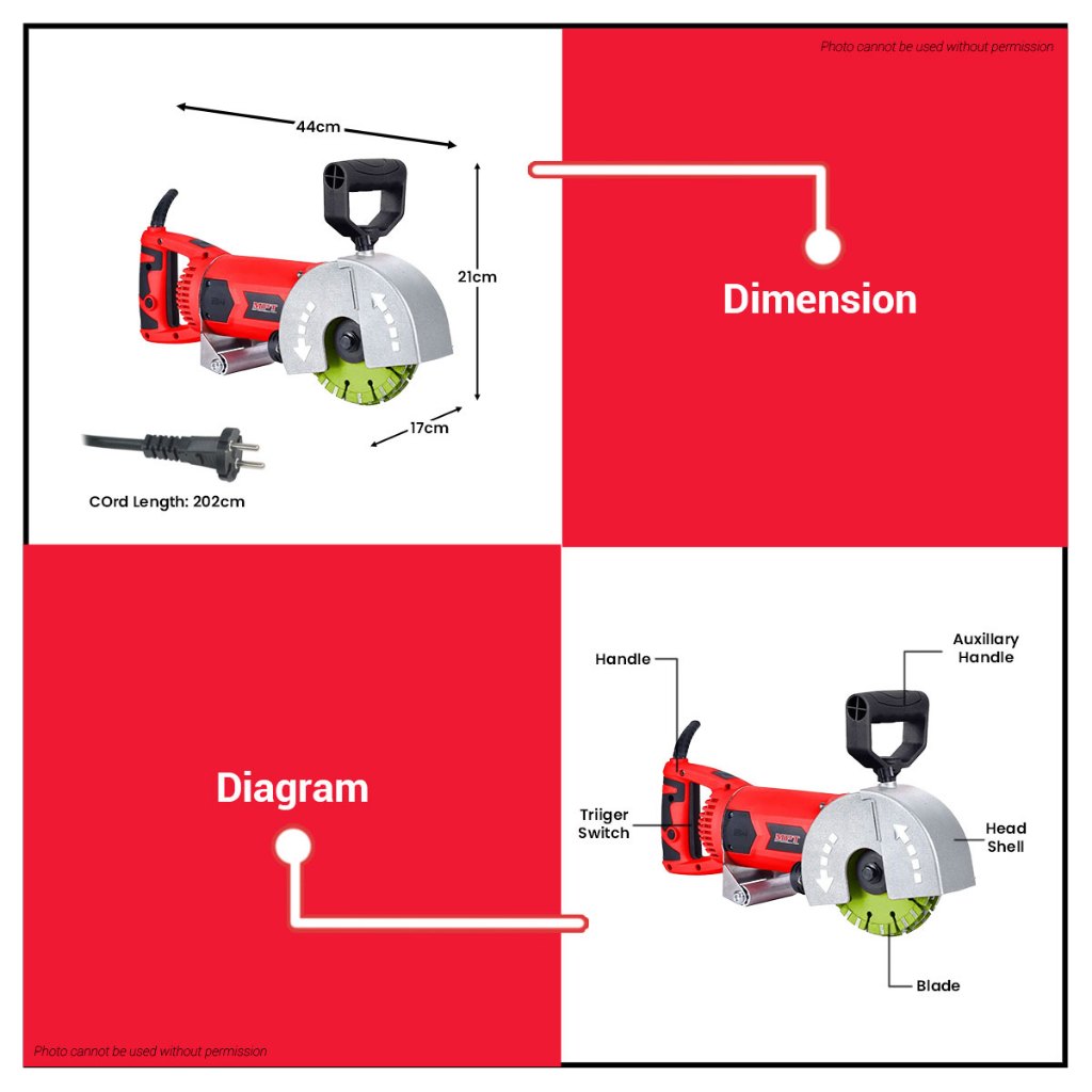 BUILDMATE MPT 2800W Wall Chaser MWC2805 for precision cutting of channels (grooves) in walls, floors
