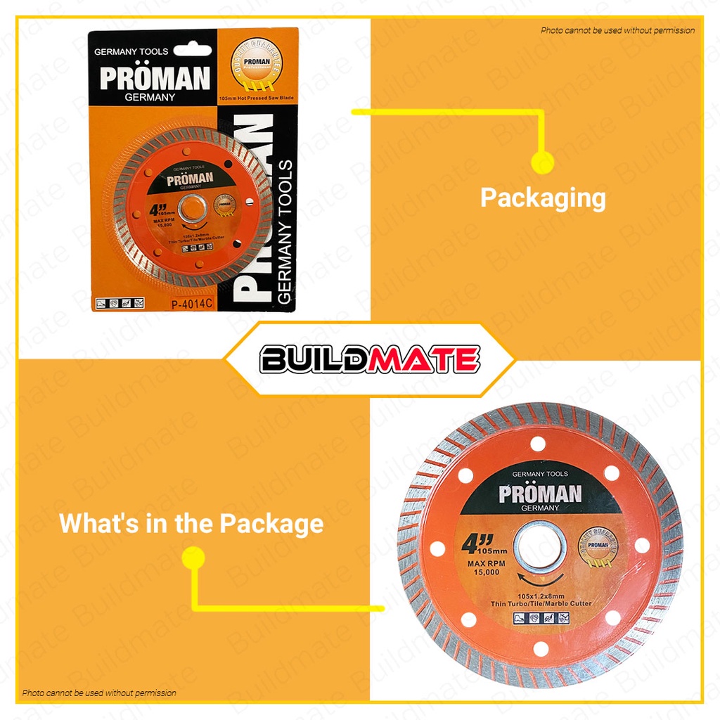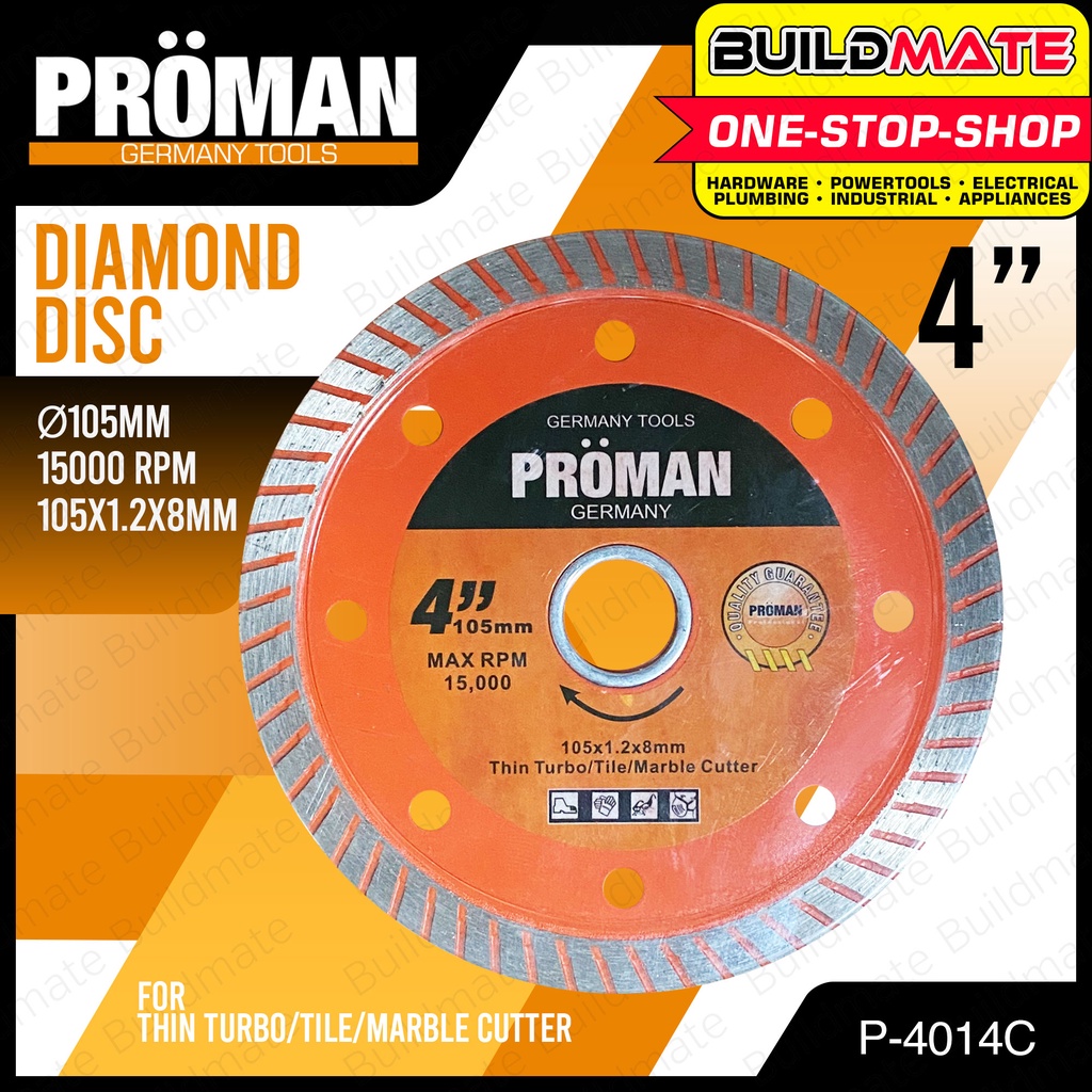 BUILDMATE Proman Germany Thin Turbo Diamond Disc 4" Inch Grinder Disc Diamond Cutting Disc P-4014C
