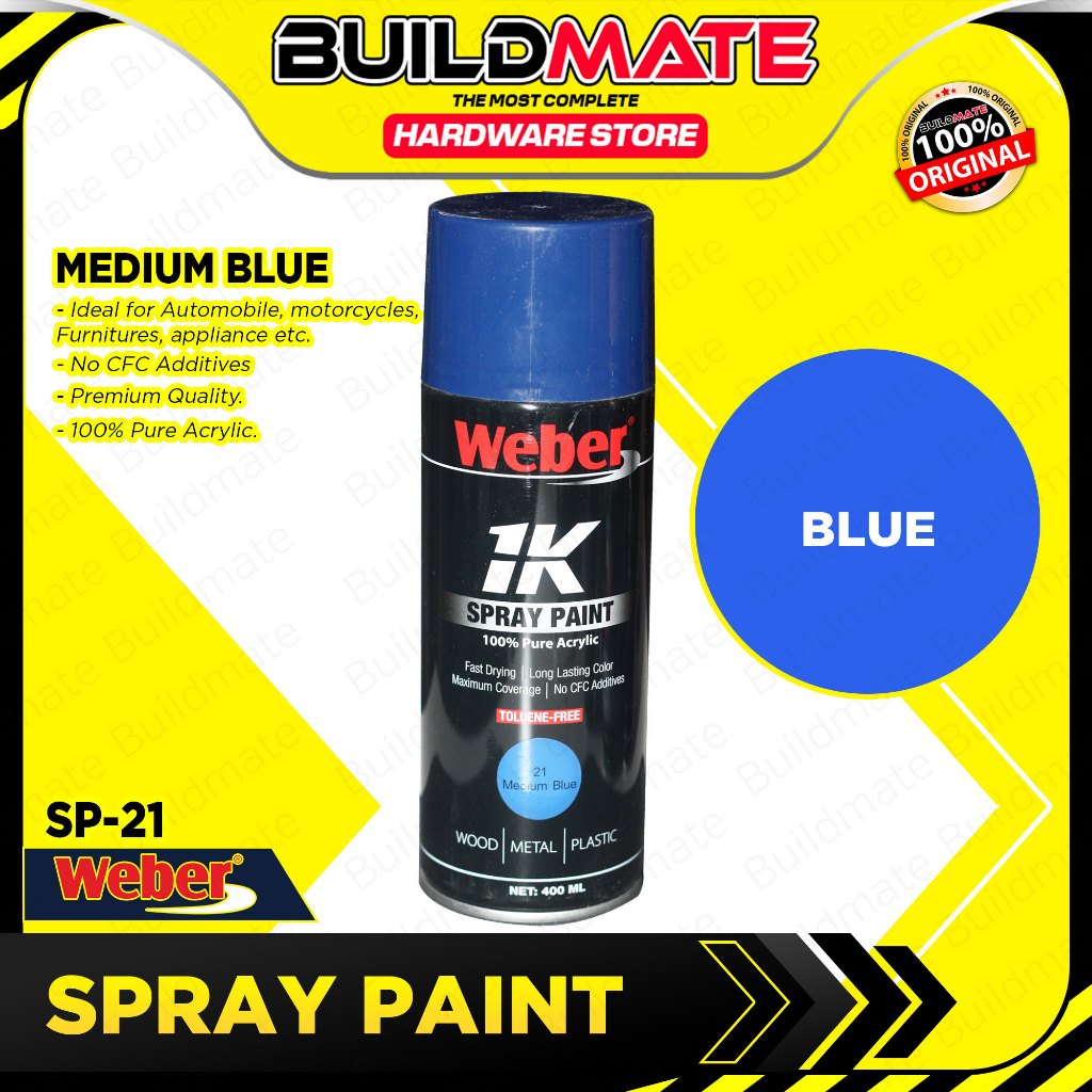 BUILDMATE WEBER 400ML Auto Spray Paint SP-21 MEDIUM BLUE Auto Quick Drying Acrylic Spray Paint