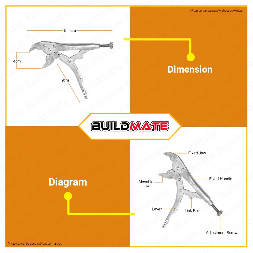 BUILDMATE Wadfow Curved Jaw Locking Plier 5" Inch Wire Cutter Locking Wrench Pliers Tool WLP1105 WHT