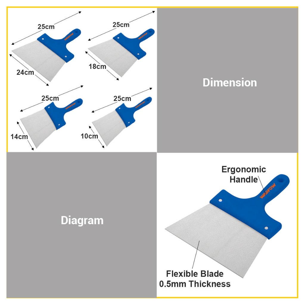 Buildmate x WADFOW Drywall Taping Knives Knife 100MM - 240MM Trowel Scraper Paint Cleaner Tool - WHT