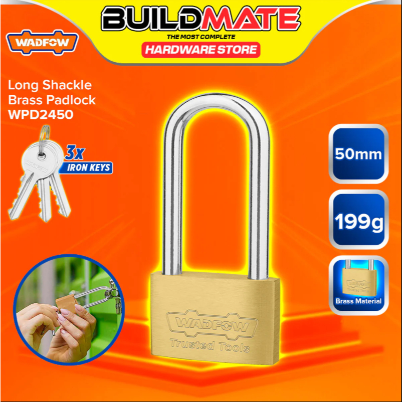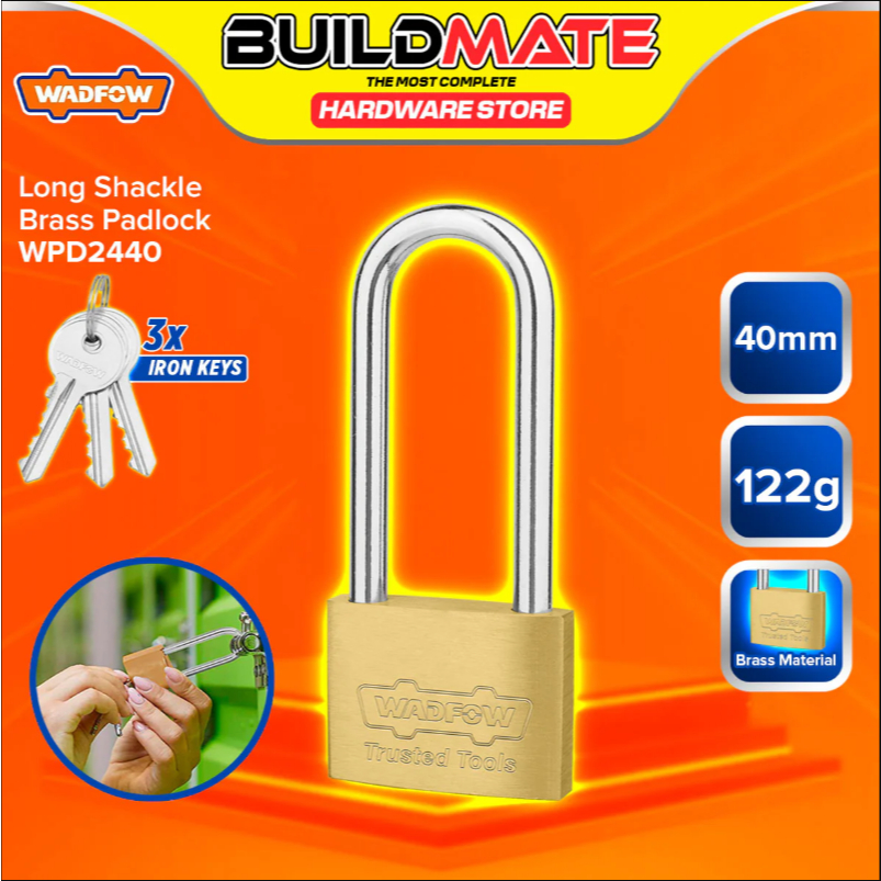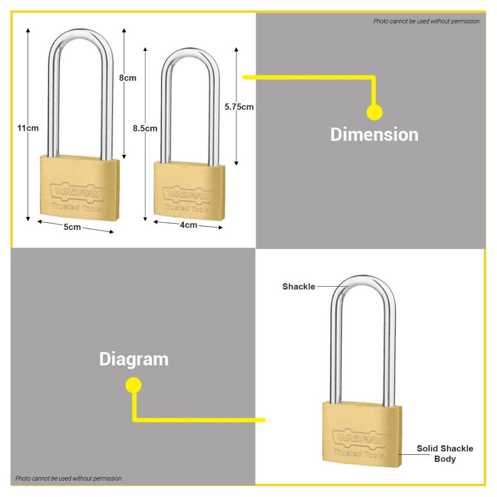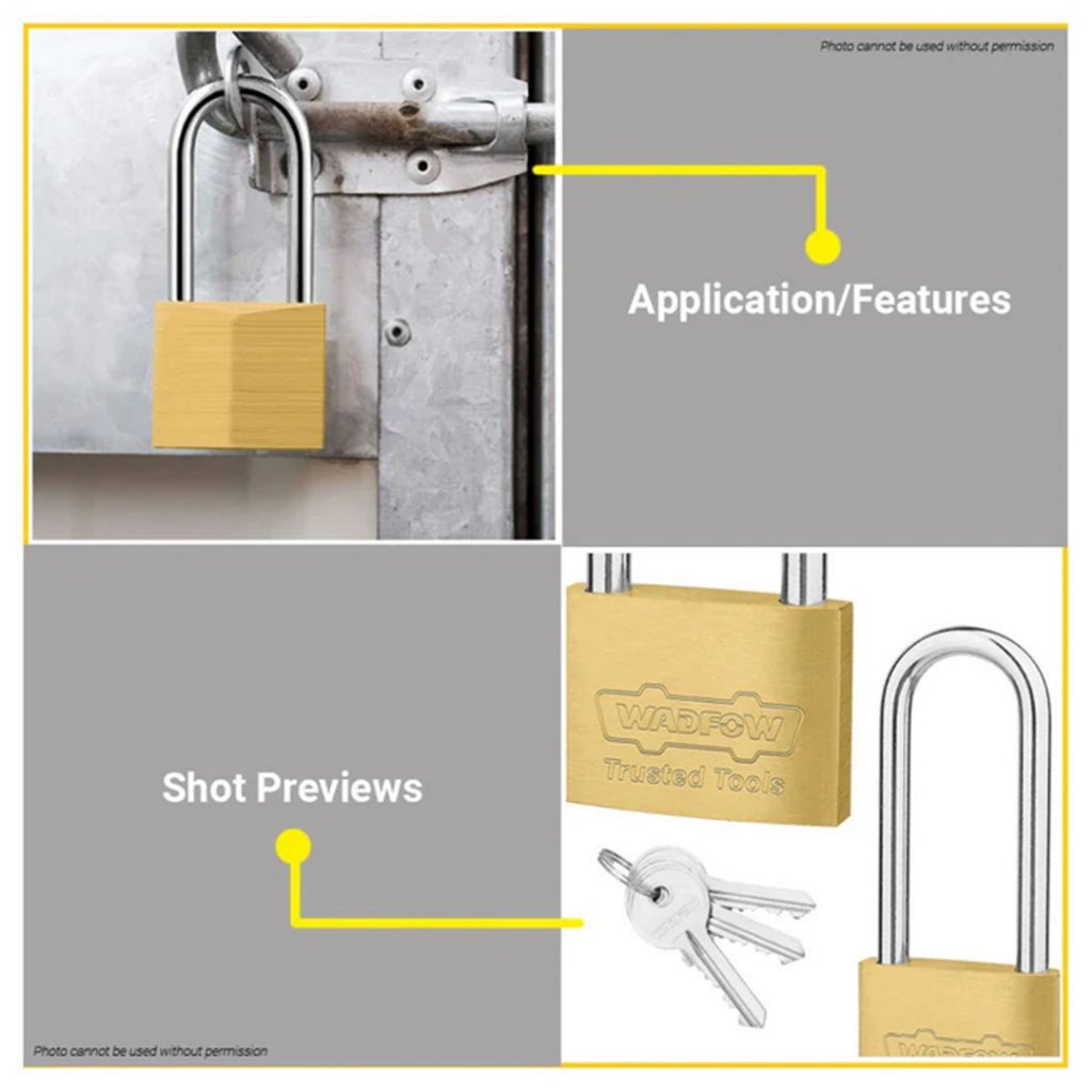 BUILDMATE Wadfow Long Shackle Brass Padlock 30MM - 50MM with 3pcs Keys Anti-Theft Security Lock WHT