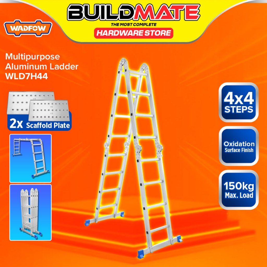 BUILDMATE Wadfow Multi-Purpose Aluminum Ladder 4x3 / 4x4 Steps Extendable Folding Step Ladder - WHT