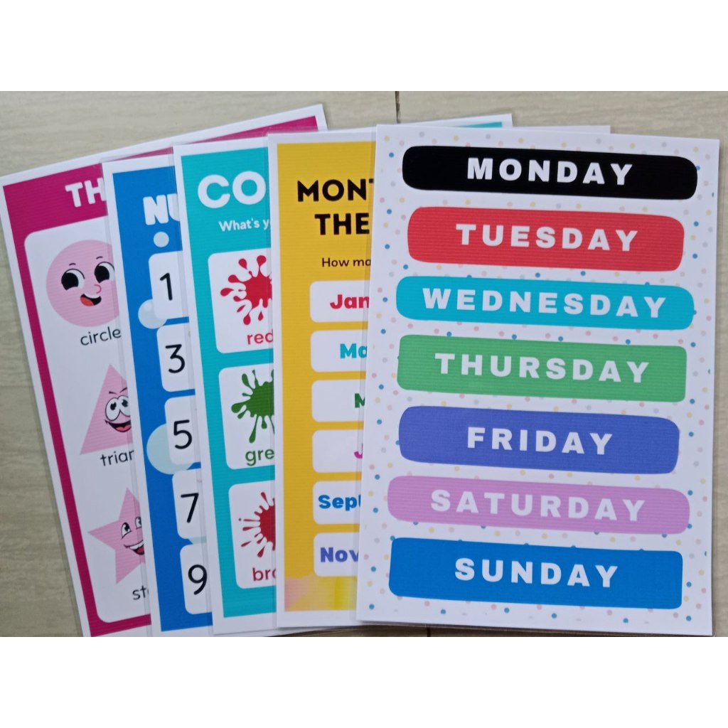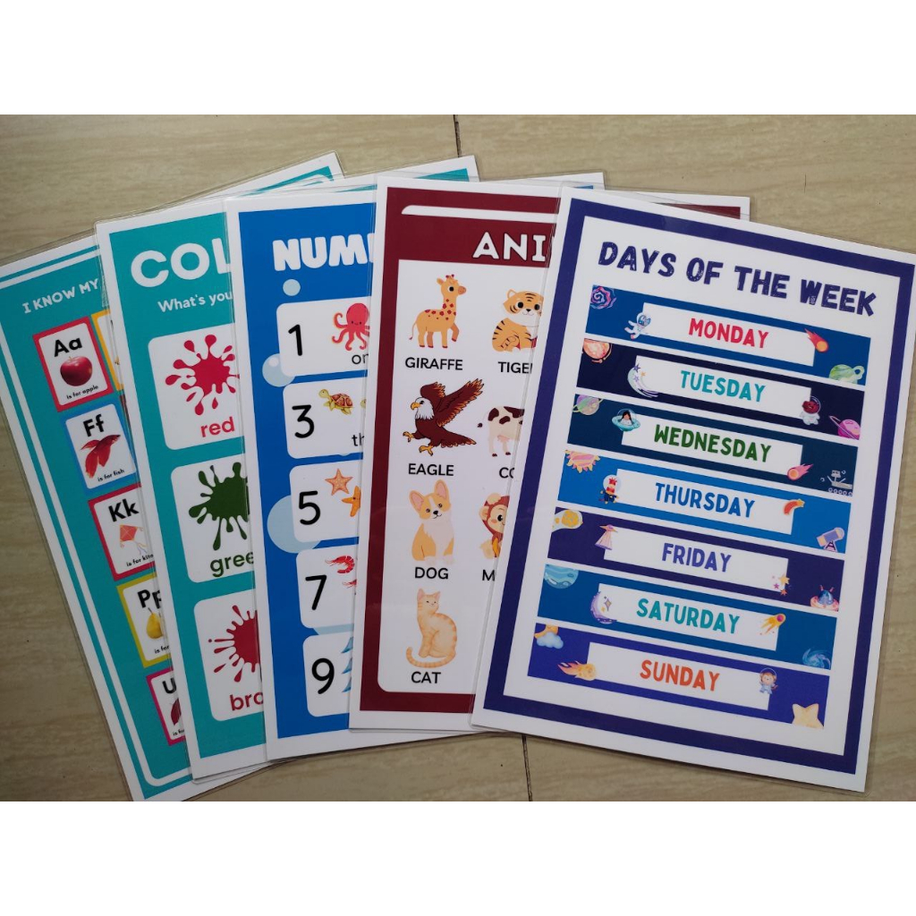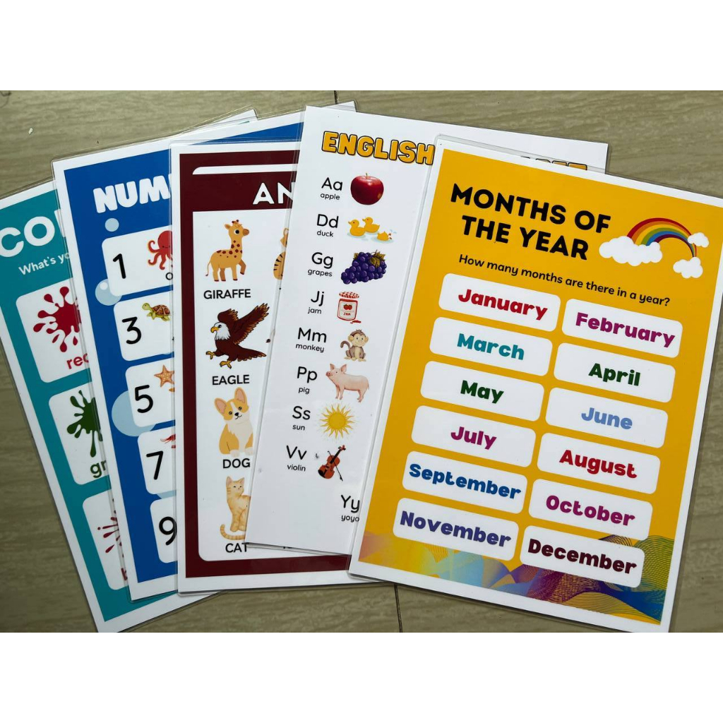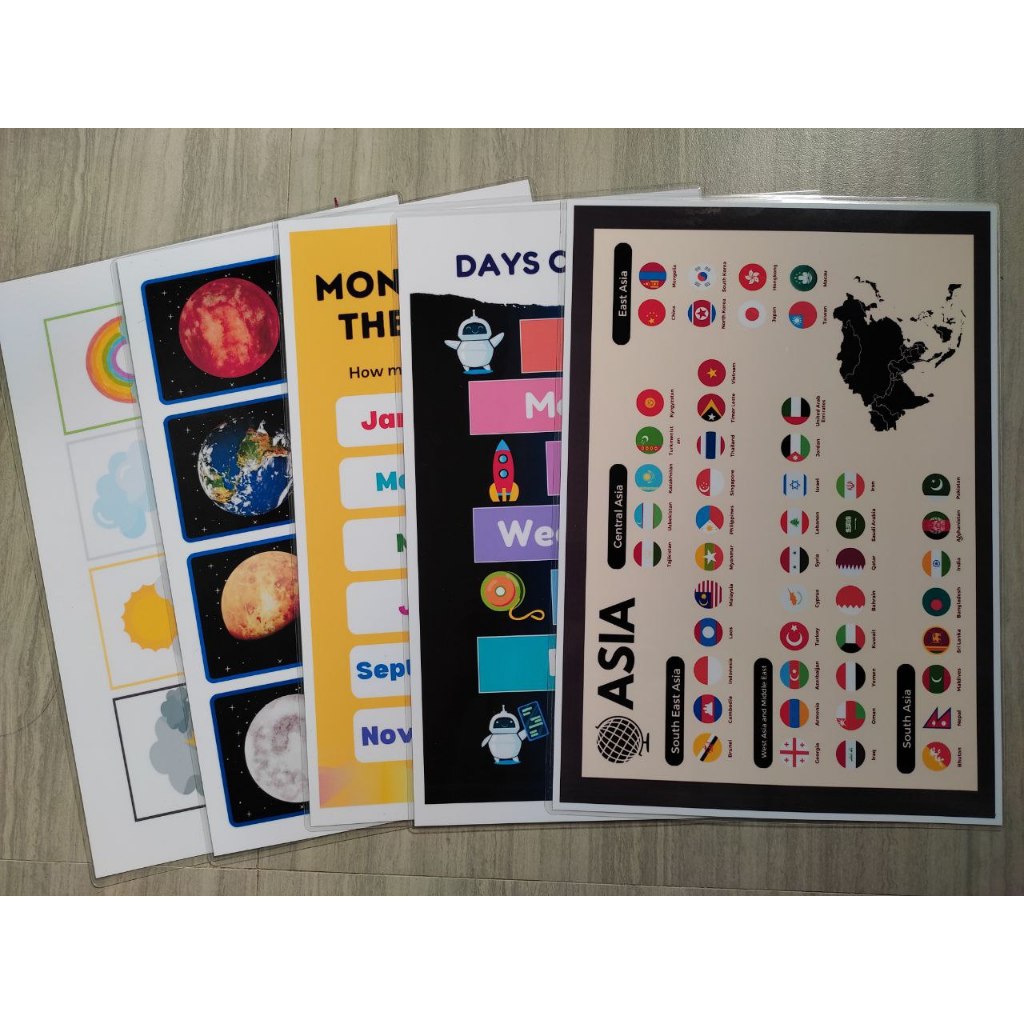 BUNDLE OF 5 Educational learning materials for kids Laminated A4 Size Chart 125MIC