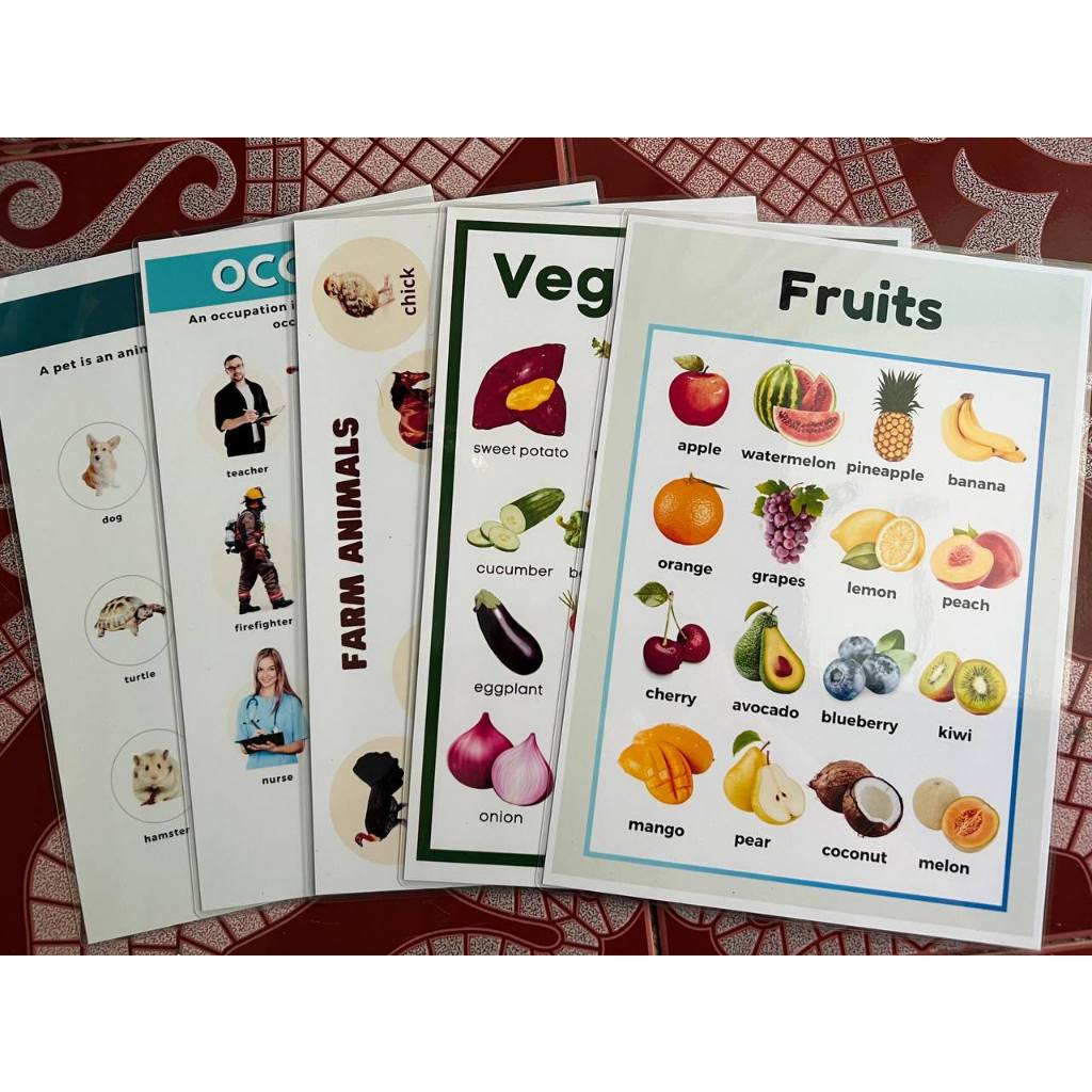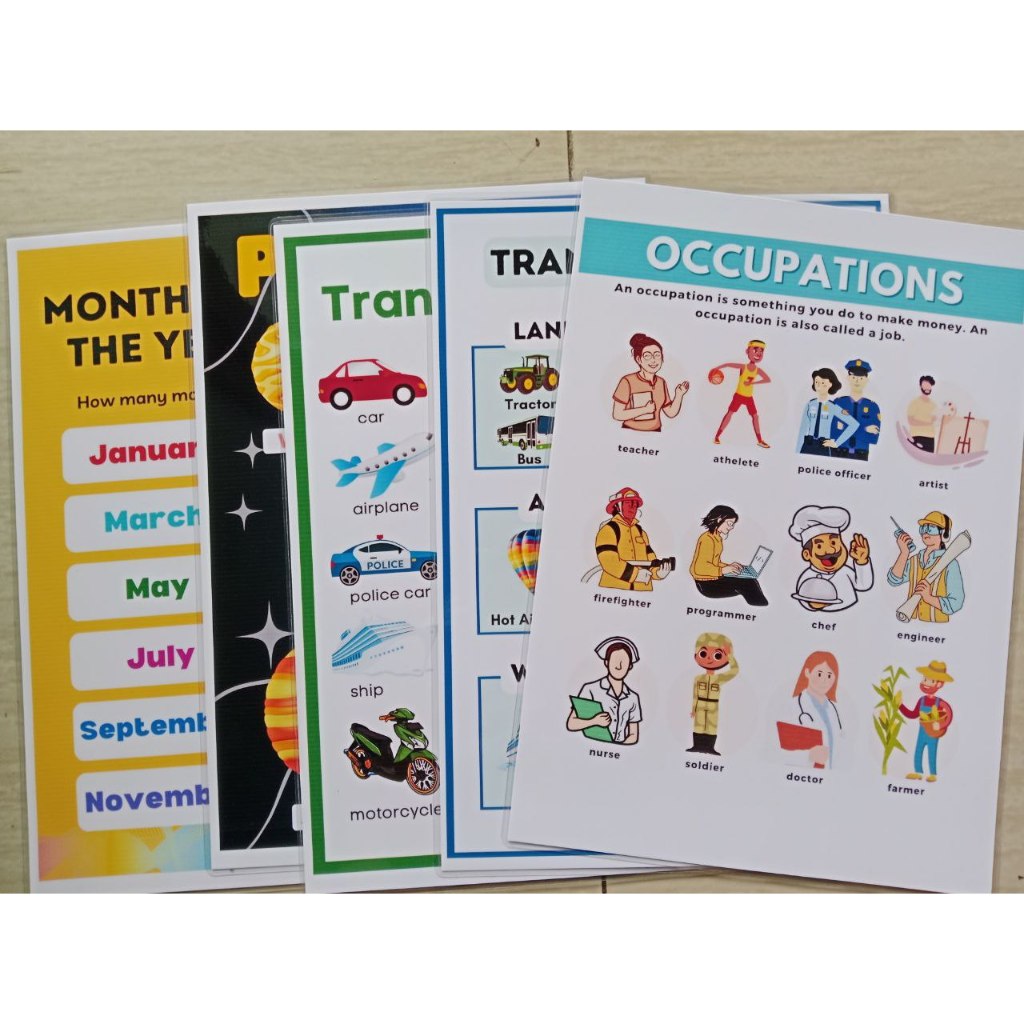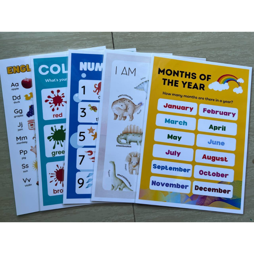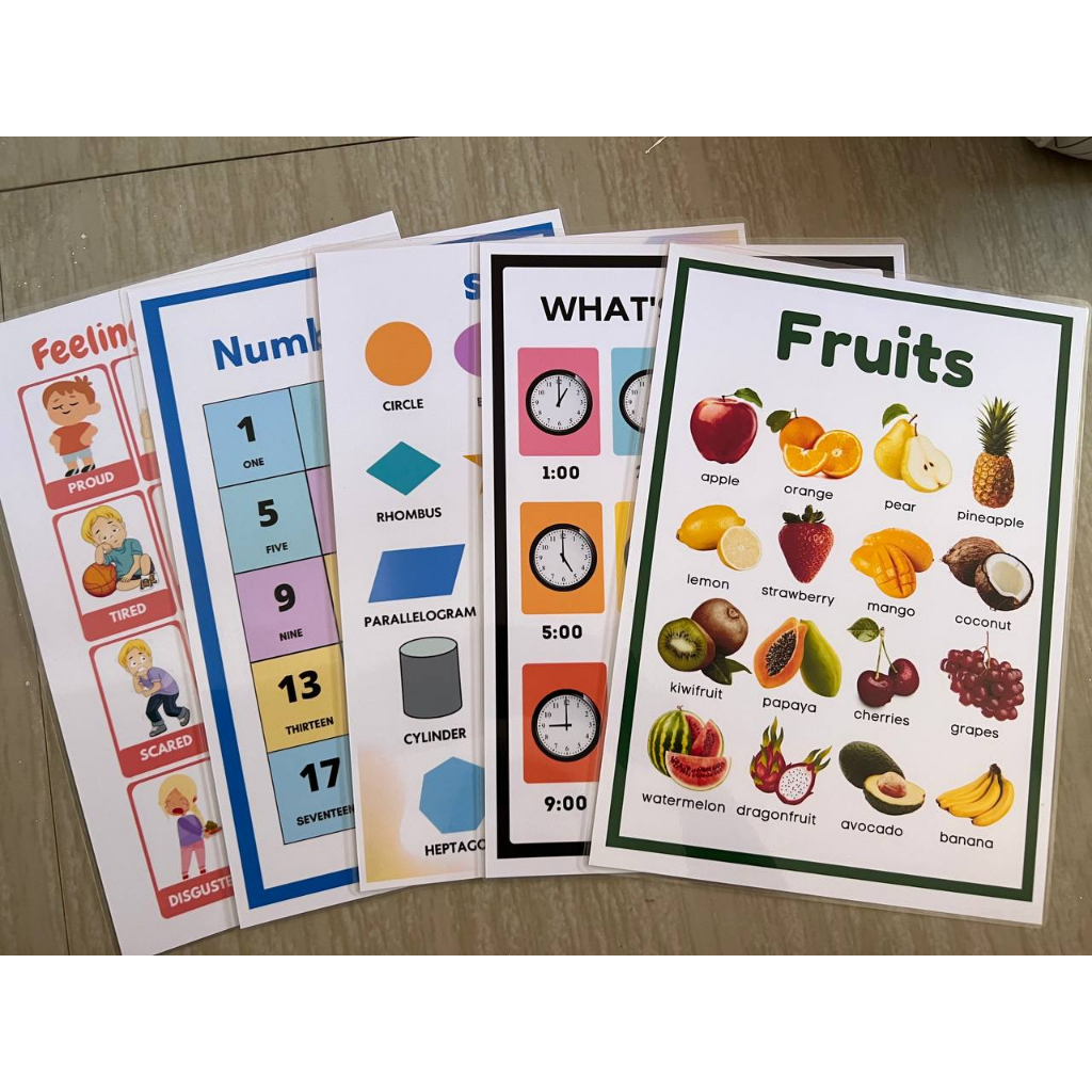 BUNDLE OF 5 Educational learning materials for kids Laminated A4 Size Chart 125MIC