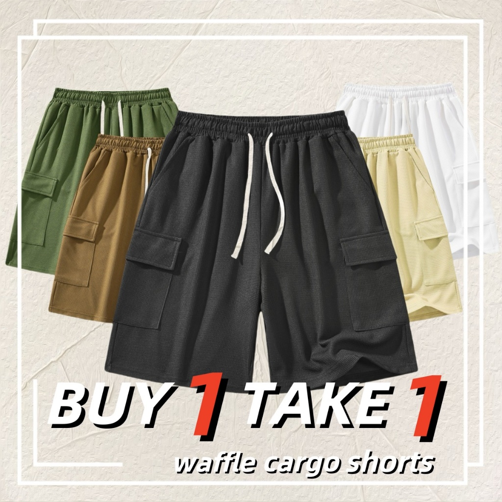BUY 1 TAKE 1 (total2)Plain waffle cargo shorts for men unisex cargo shorts 4 pockets high quality