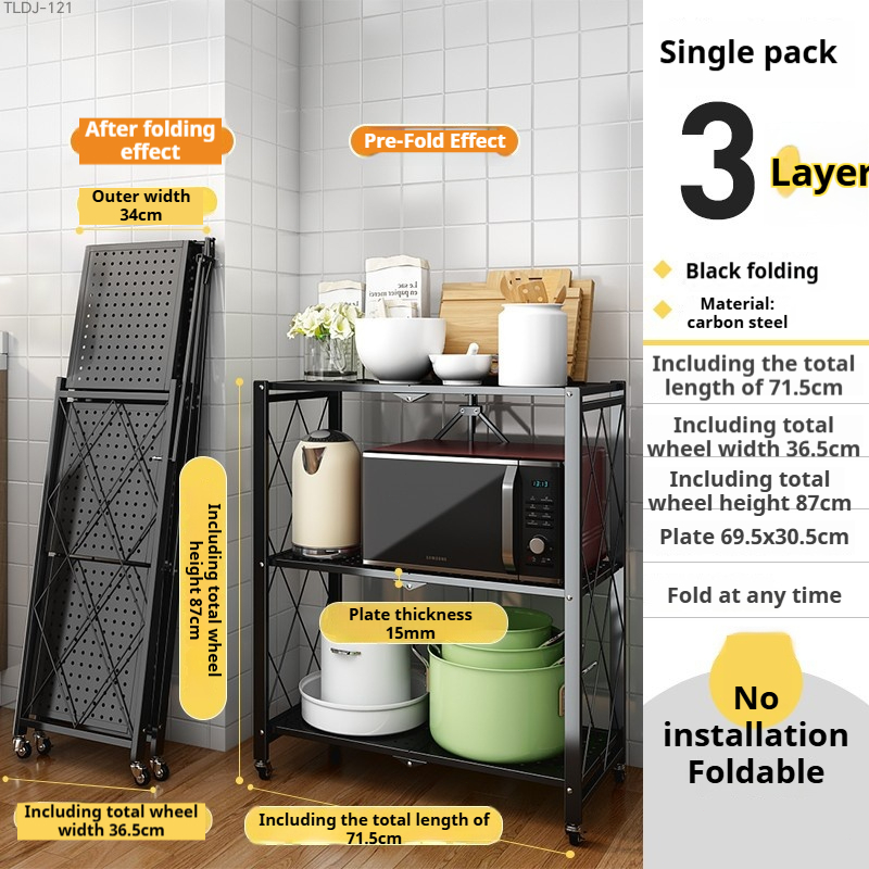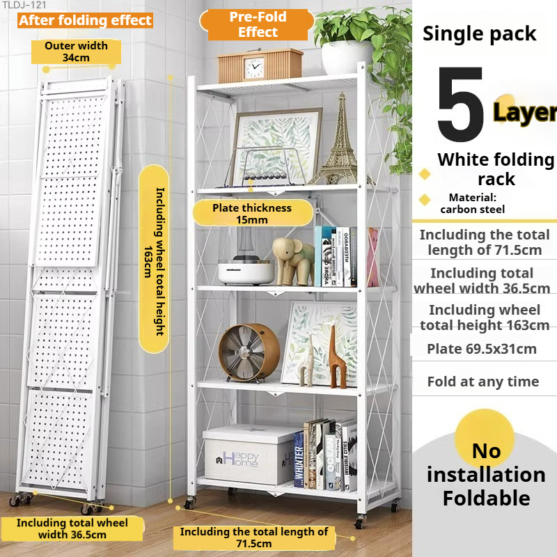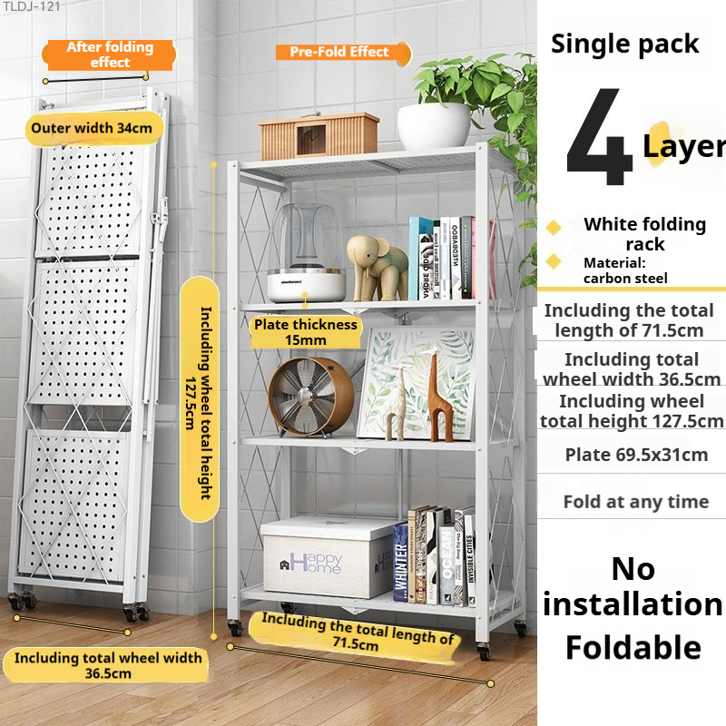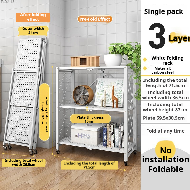 BUY 1 TAKE 1 Folding Kitchen Supplies Racks Foldable Steel Shelf Racks With Wheels Installation-free