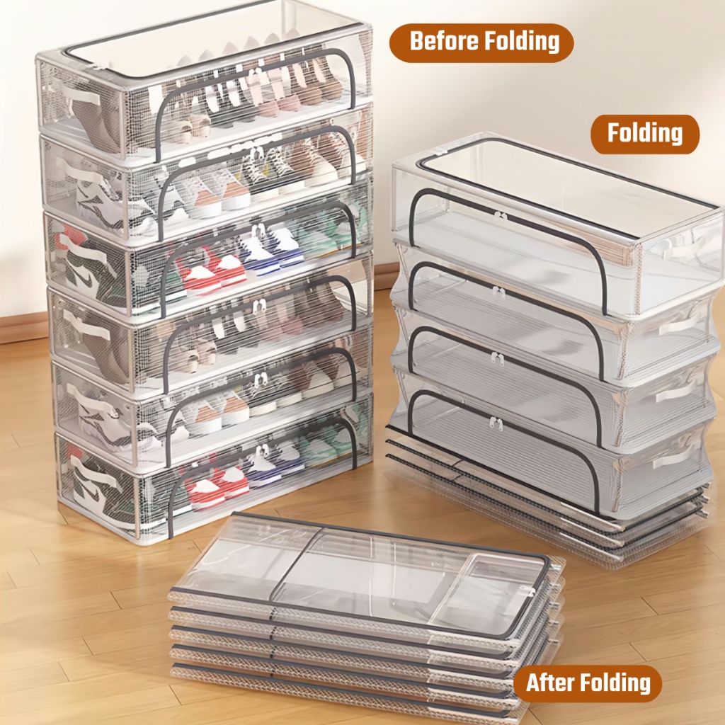 BUY 1 TAKE 1 Shoe Box Foldable Shoe Storage Stackable Organizer Box Waterproof PVC Clothes Storage