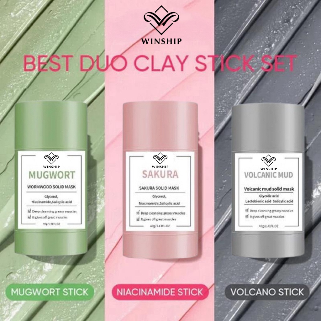 BUY 1 TAKE 2 WINSHIP Clay Mask Stick Trio Brightening Anti-Acne Exfoliating Skincare Niacinamide