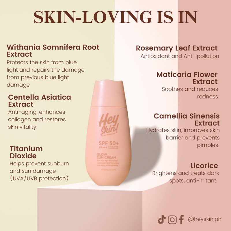 BUY 2 GET 1 FREE Hey Skin Glow Sun Cream SPF 50+ PA+++ UVA/UVB protection