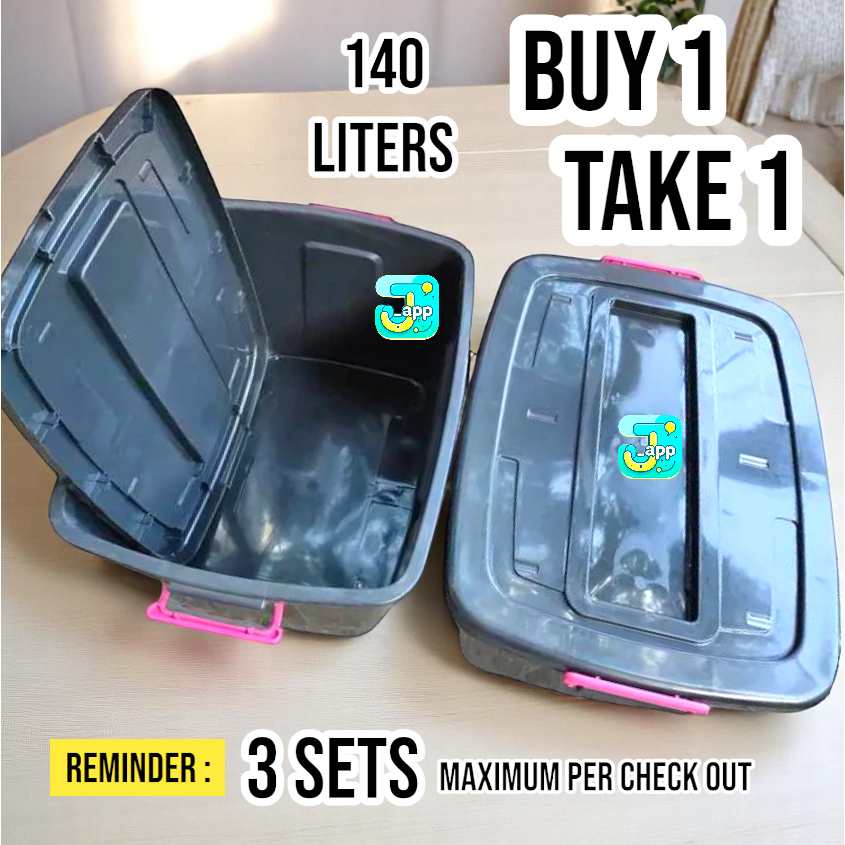 BUY1 TAKE1 140 LITERS Storage BOX WITH COVER and WHEELS LARGE SIZE