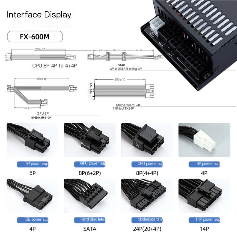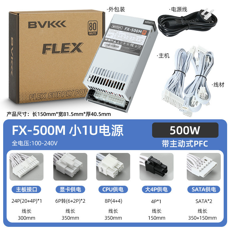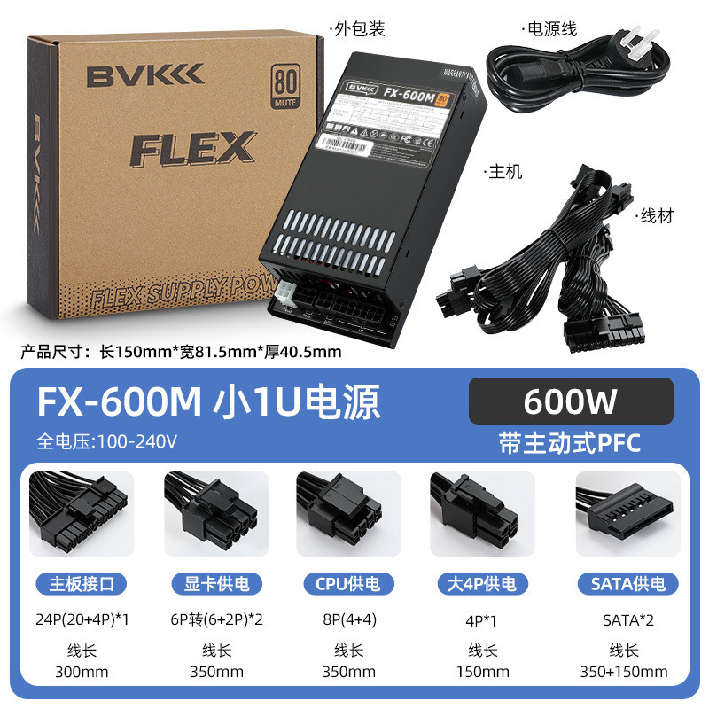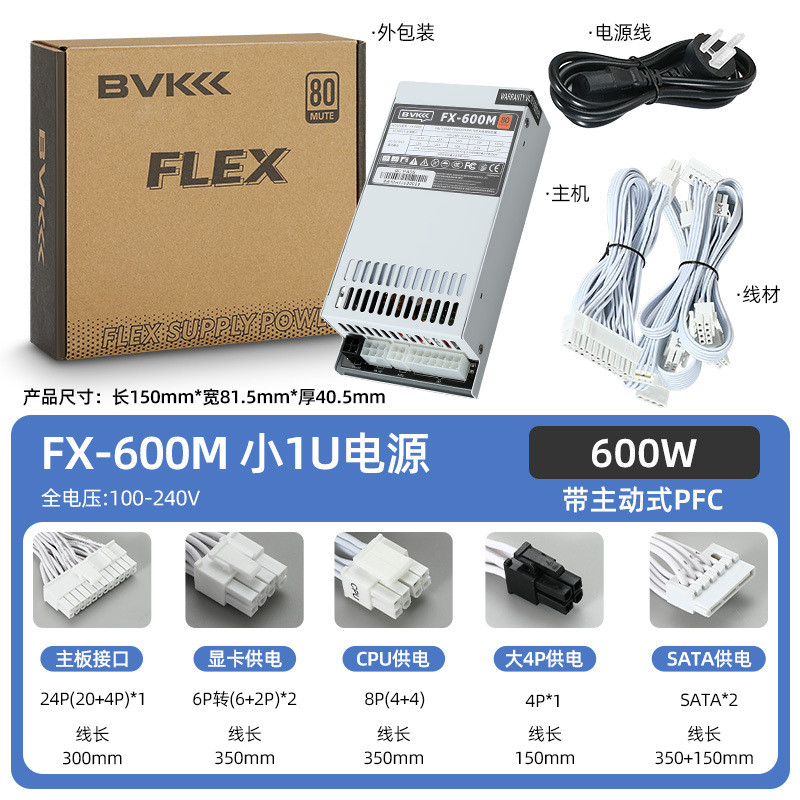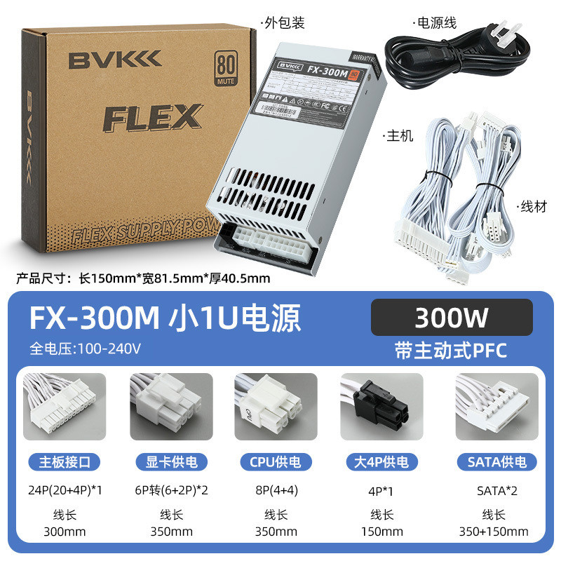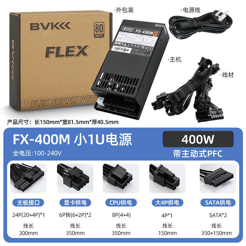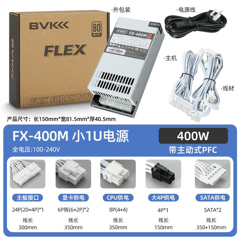BVK FLEX PSU 300W 400W 500W 600W Small 1U Power Supply Full Modular Graphics Card Power