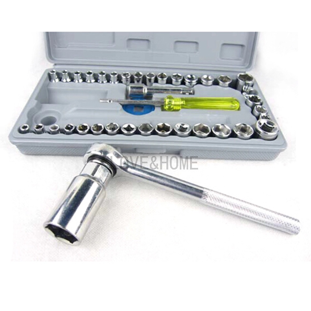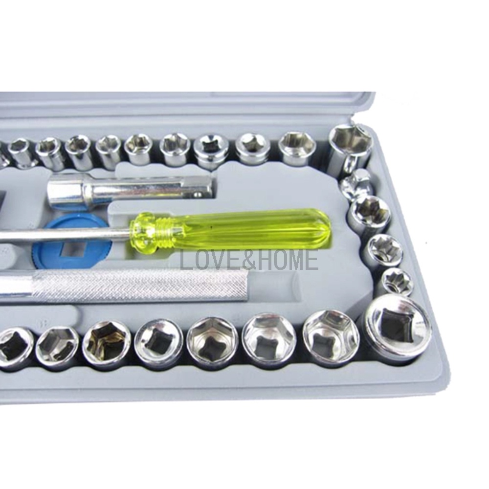 BVS 40pcs Combination Socket Wrench Set WITH Multipurpose Wrench 48in1 Tools Socket Works (BANS RED)
