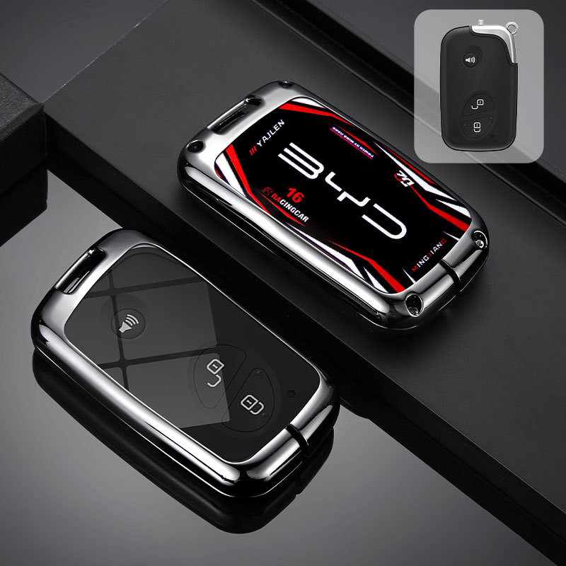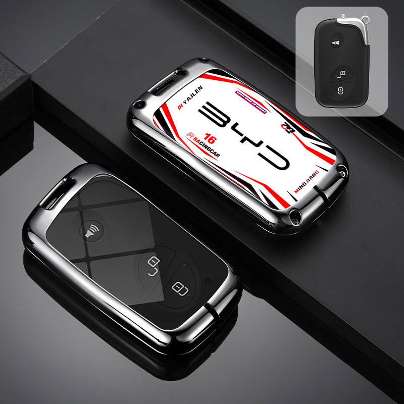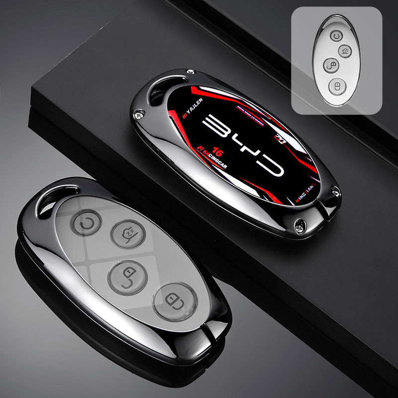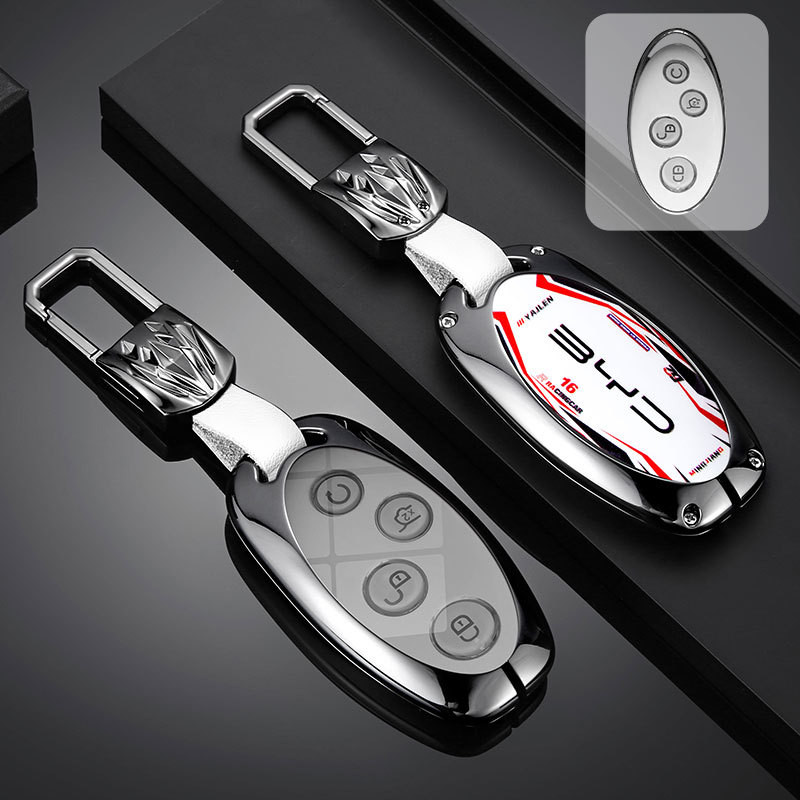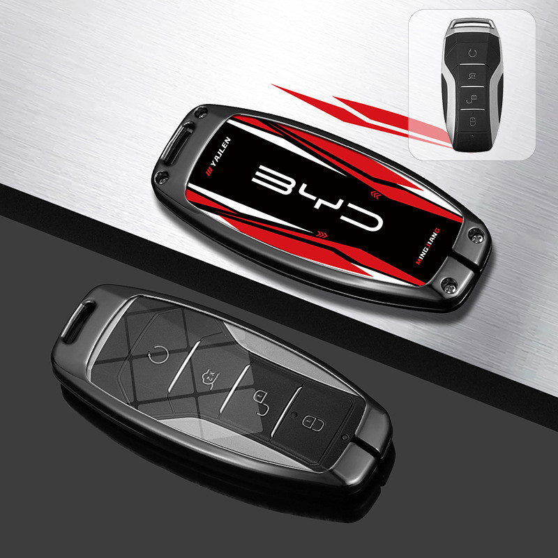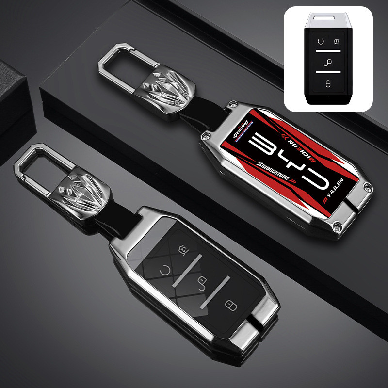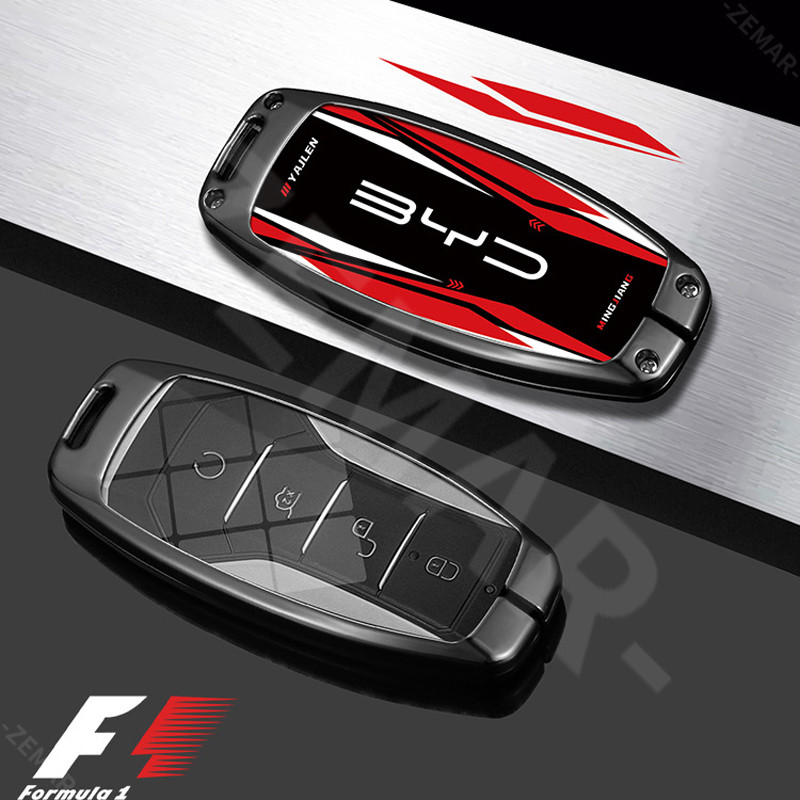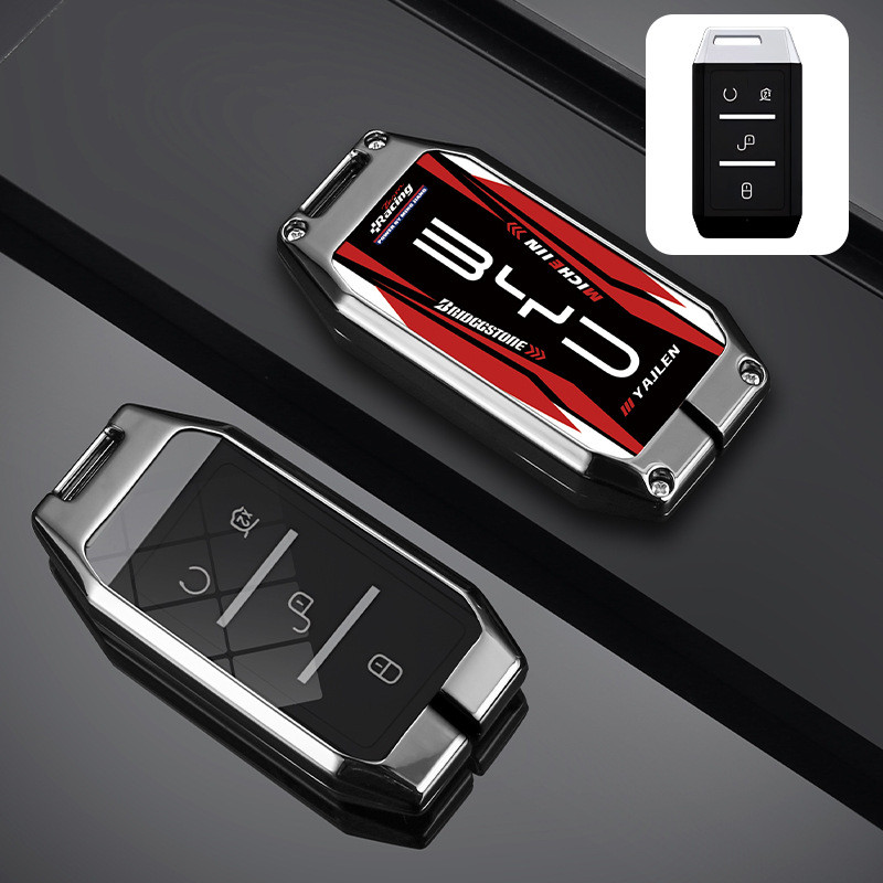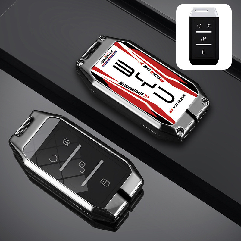 BYD Car Key Shell Key Case Zinc Alloy Racing Style Key Cover Smart Key Case Protector Fashion Accessories for BYD Atto 3 Sealion 6 M6 Tang Qin E3 E2 S1 Dolphin Han EV